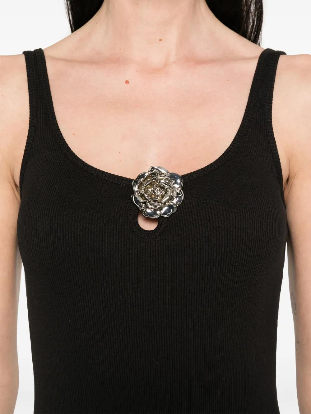 black rose motif sequin embellishment leaf detailing brooch fastening
