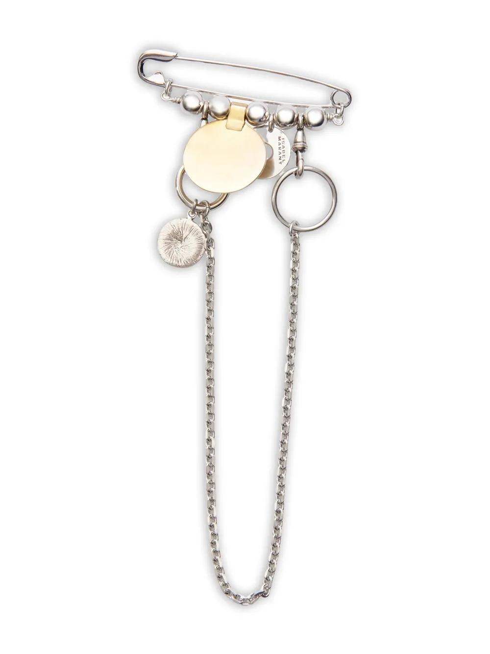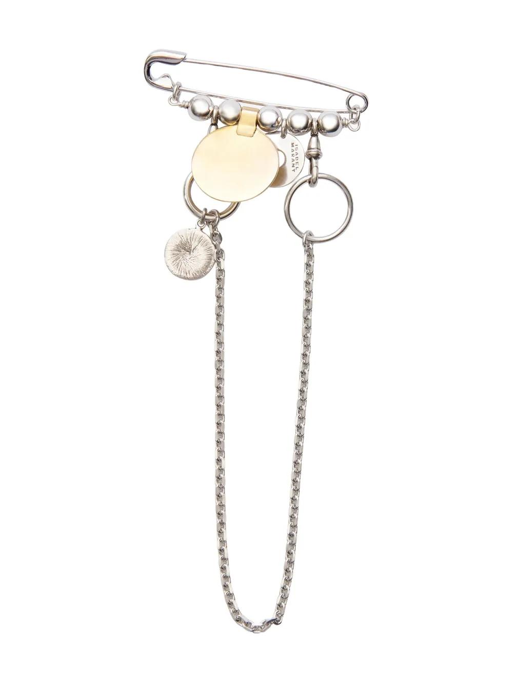 silver-tone/gold-tone brass chain-link detailing safety pin engraved logo