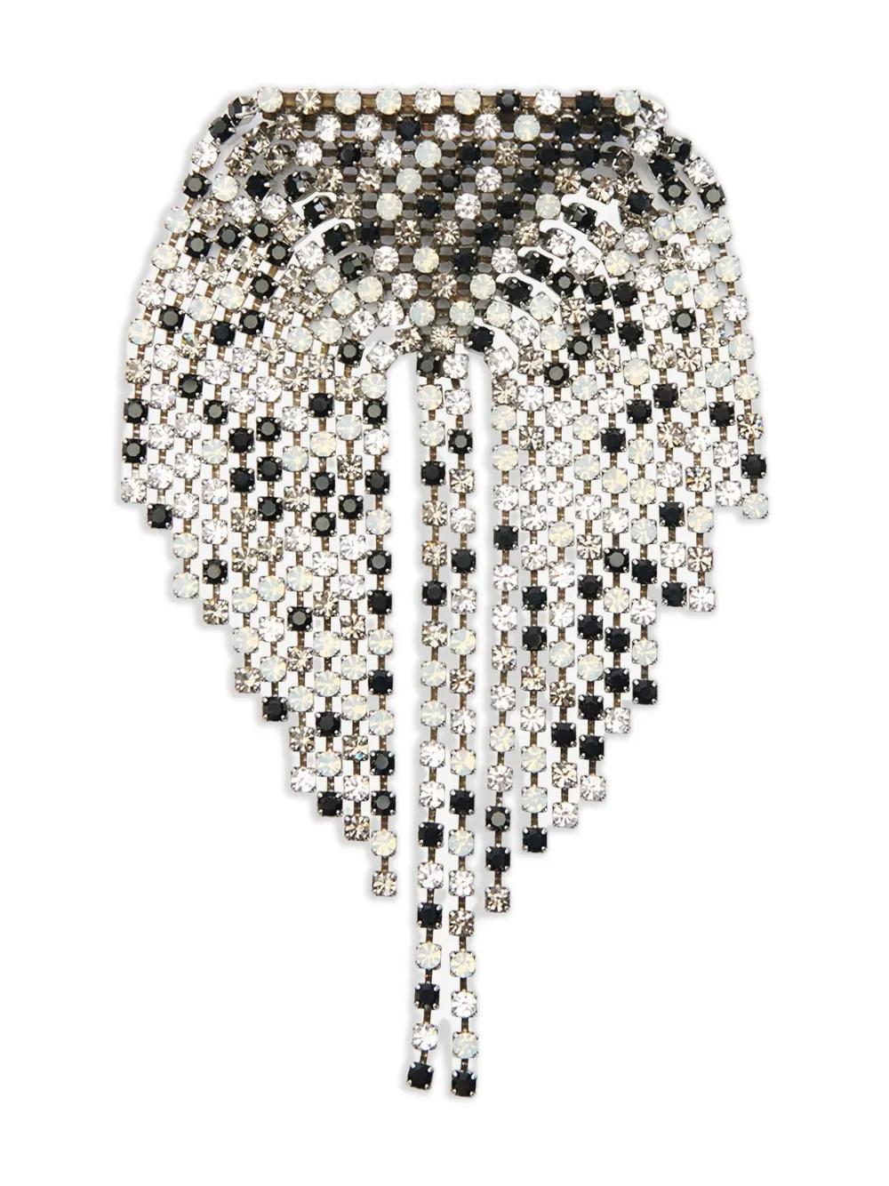 silver asymmetrical design crystal embellishment rear hook fastening fringe detail