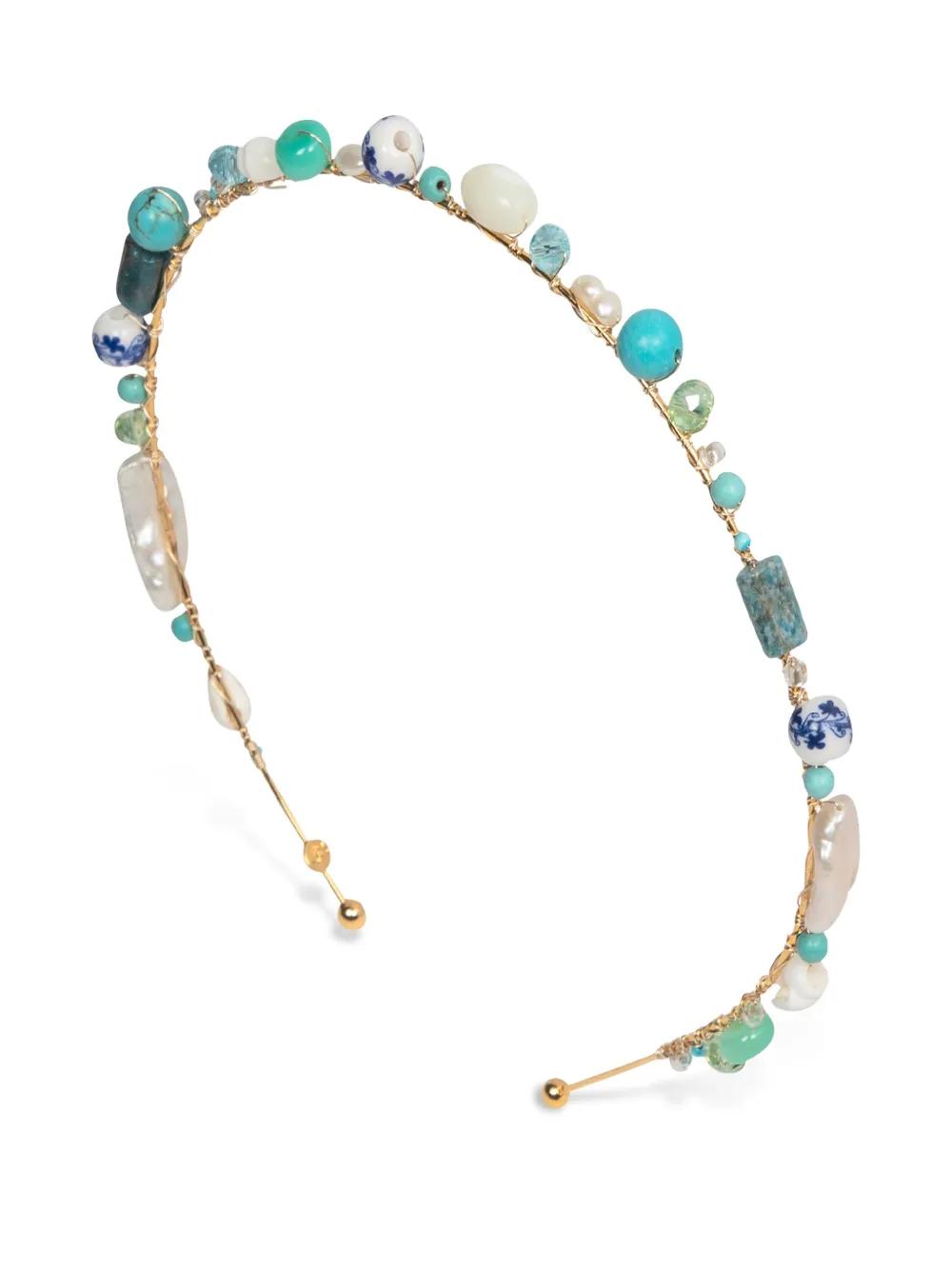 gold-tone polished finish engraved logo faux-pearl embellishment monogram plaque