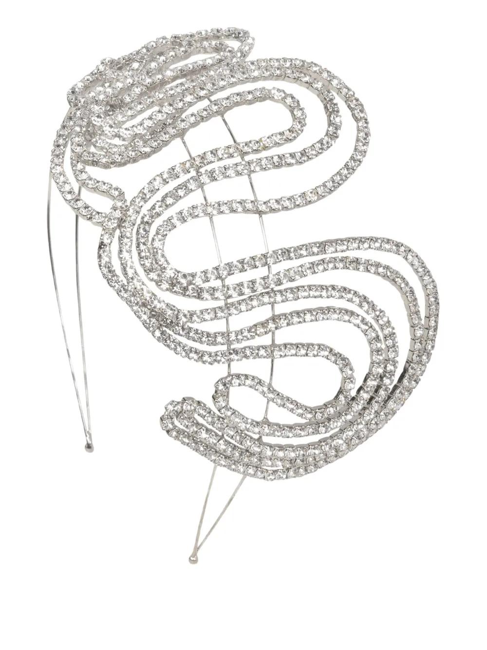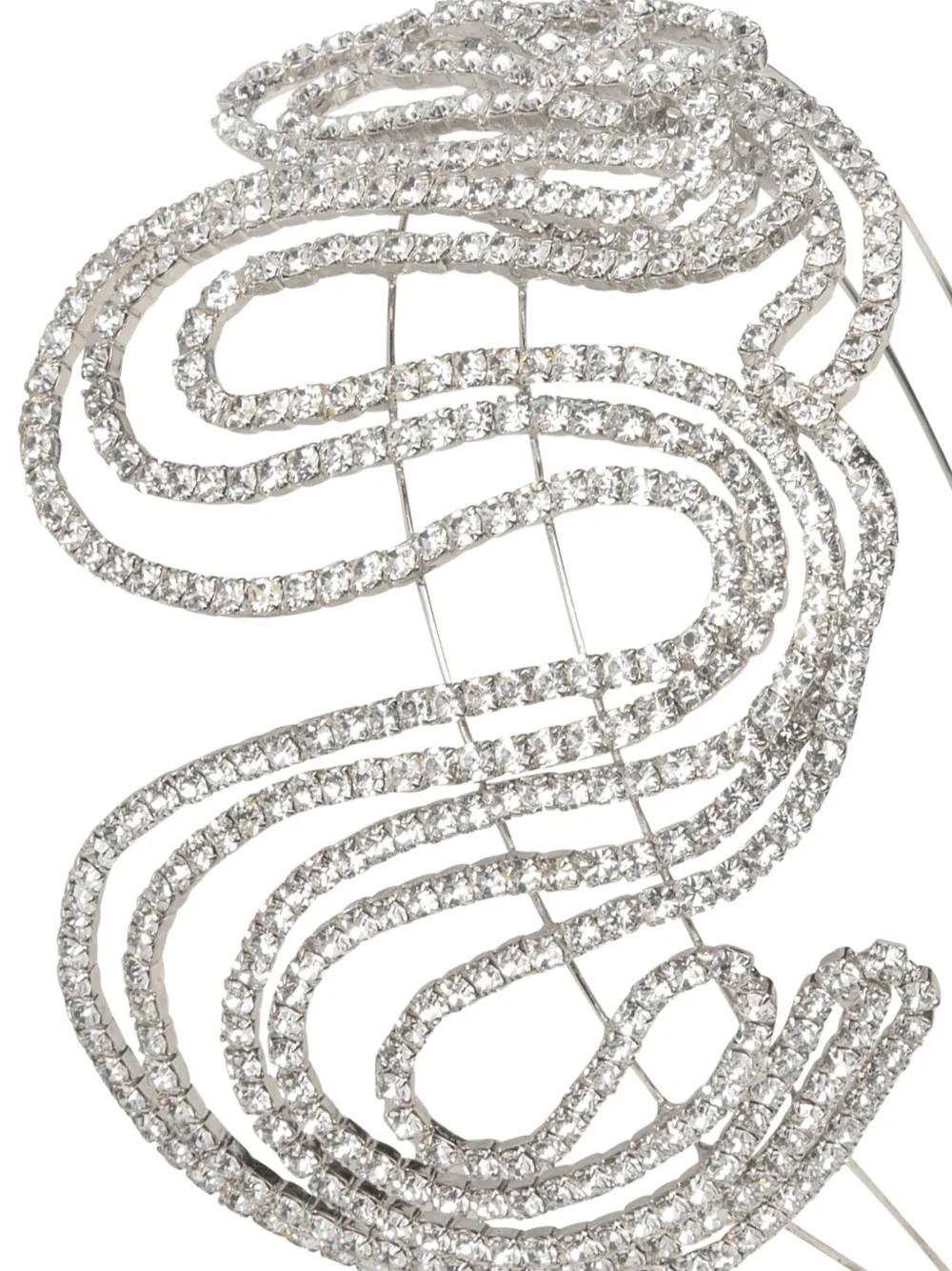 silver rhodium-plated finish crystal embellishment metal construction swirl design