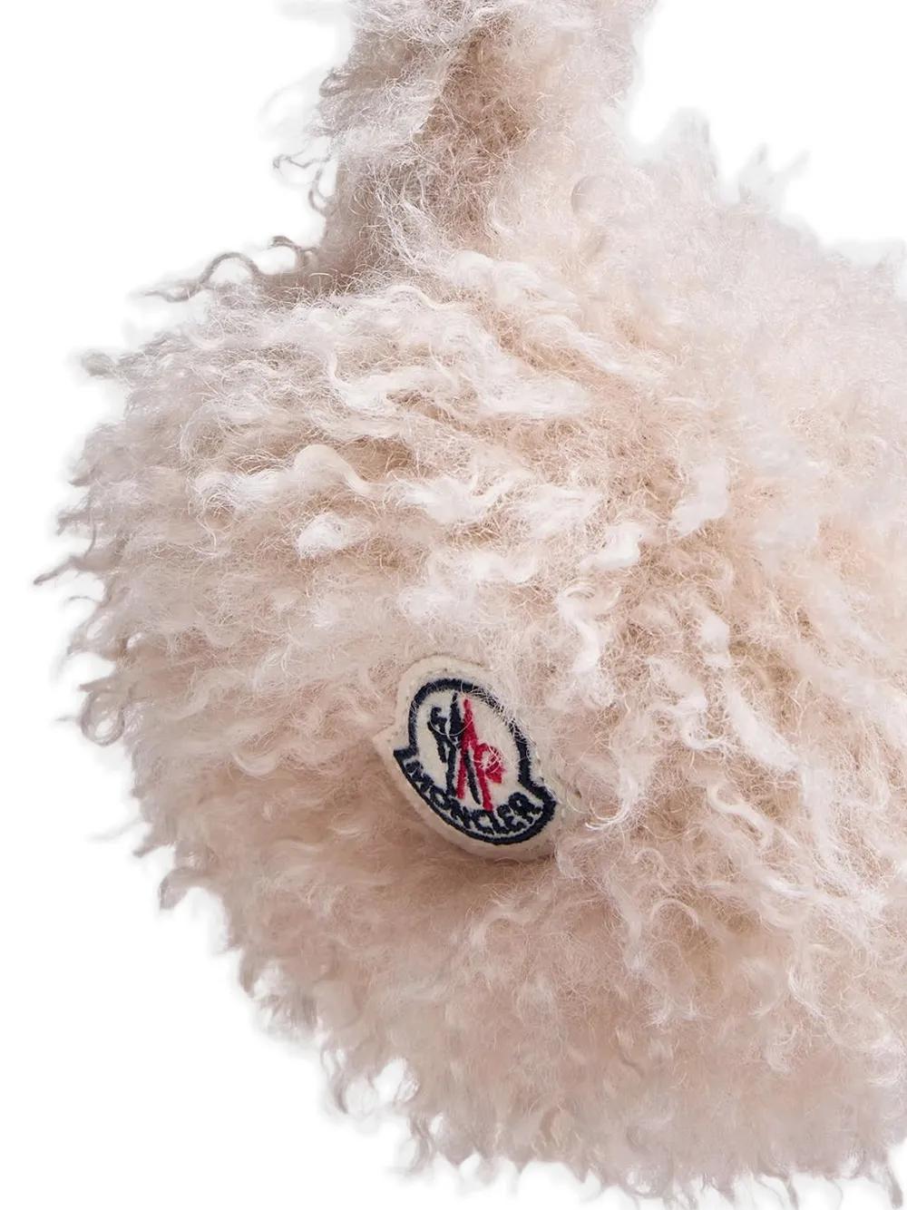 off-white curly fur logo patch headband design ear covering fluffy texture