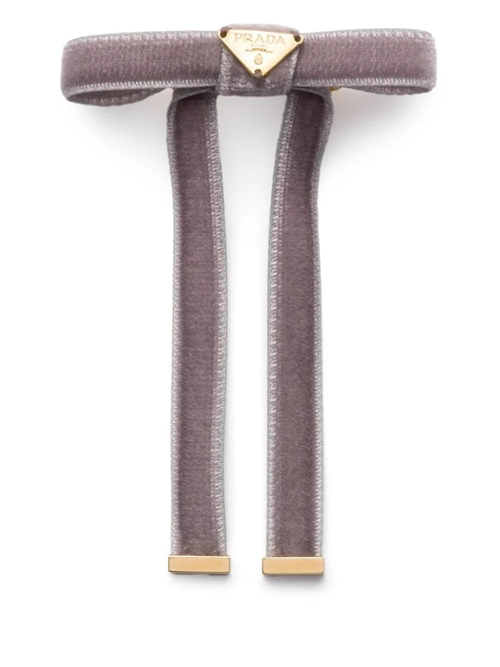 Prada logo velvet hair clip - Grey