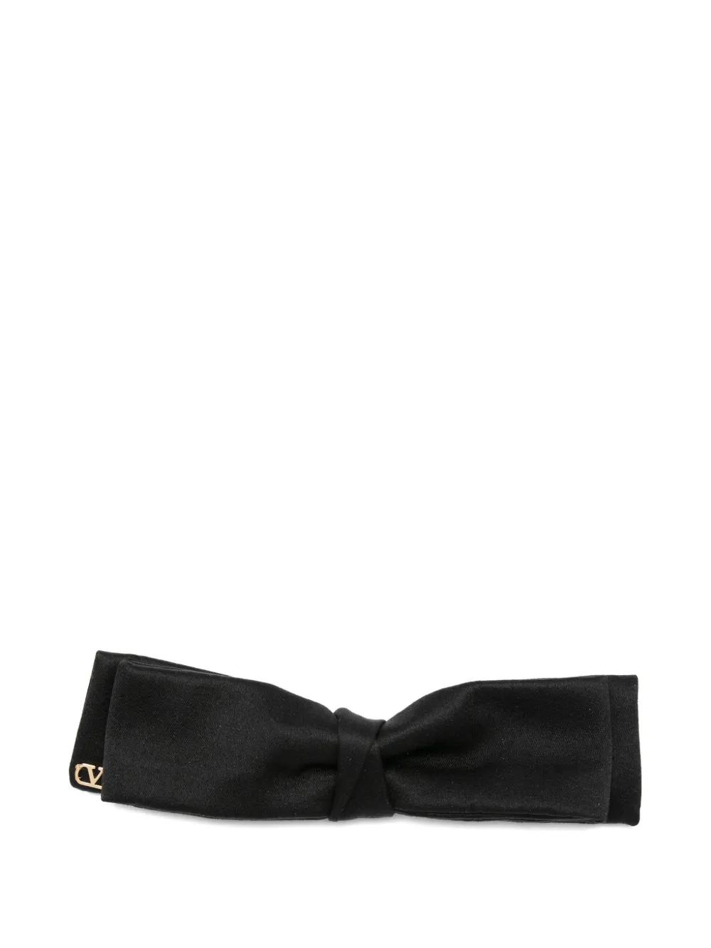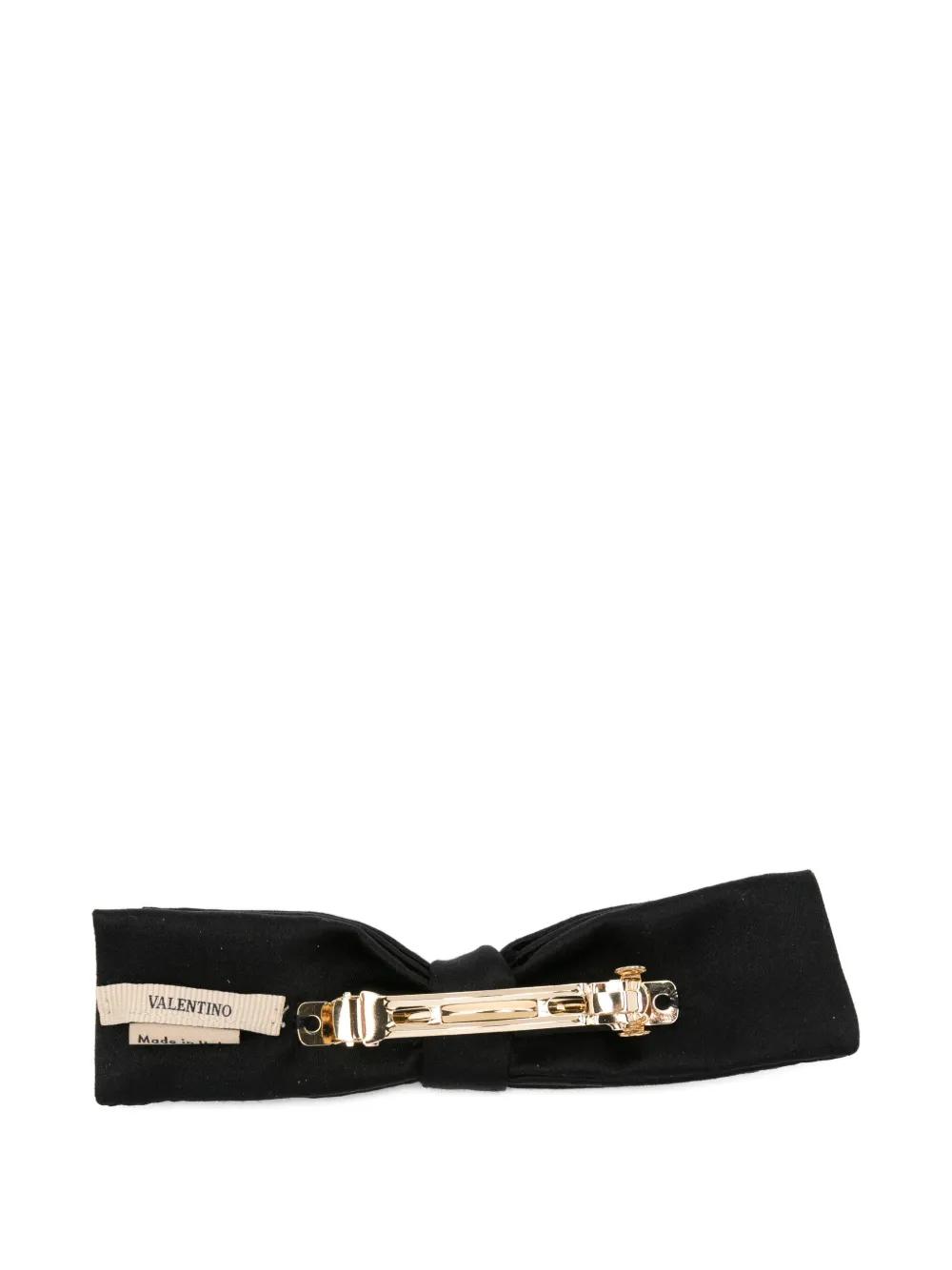 Valentino Ready To Wear black satin texture gold-tone logo bow shape clip fastening
