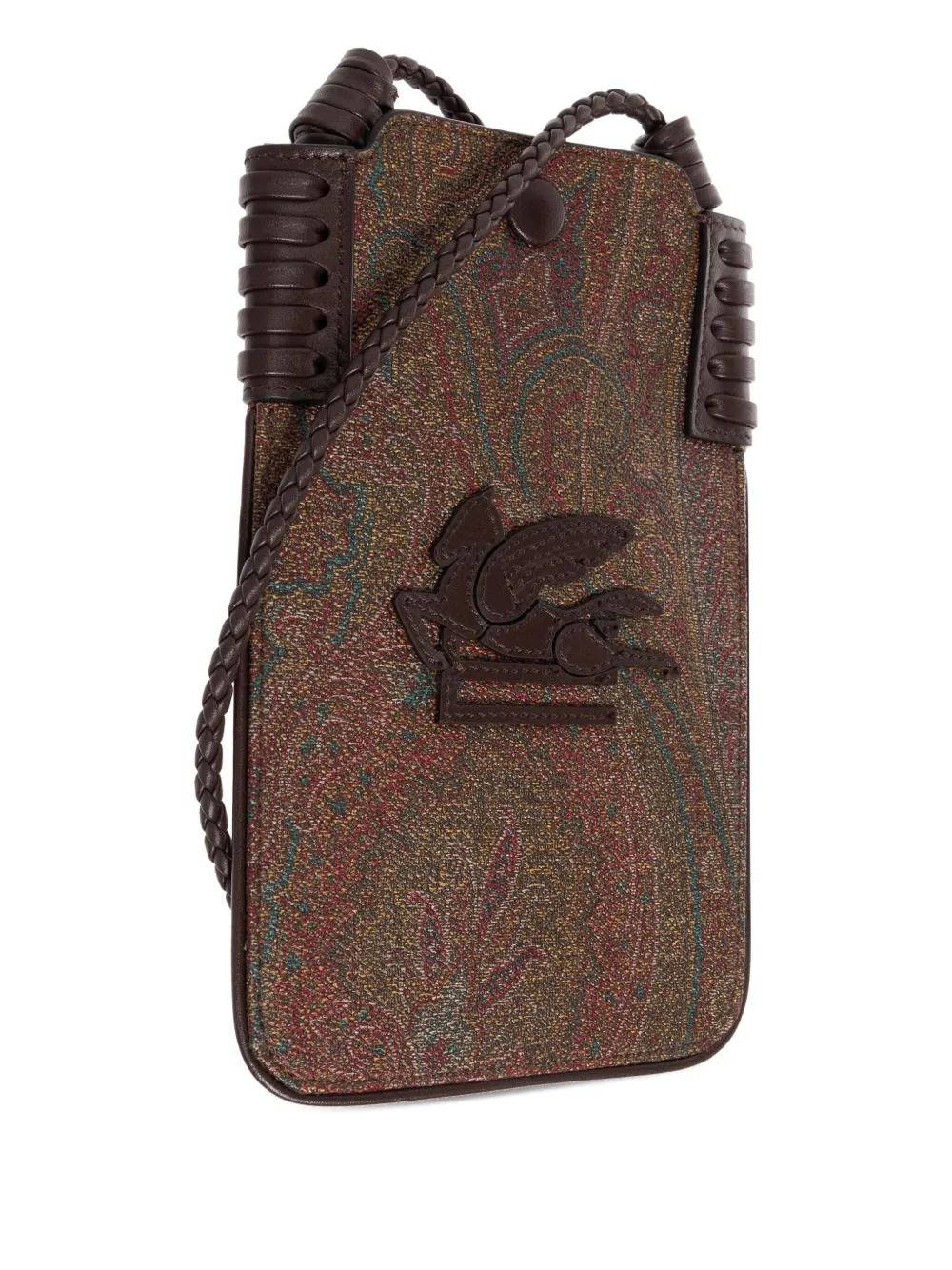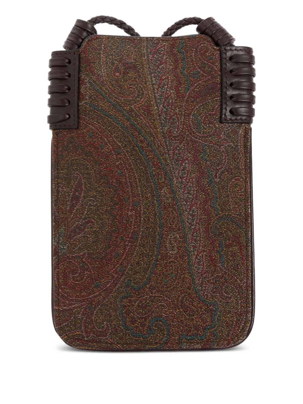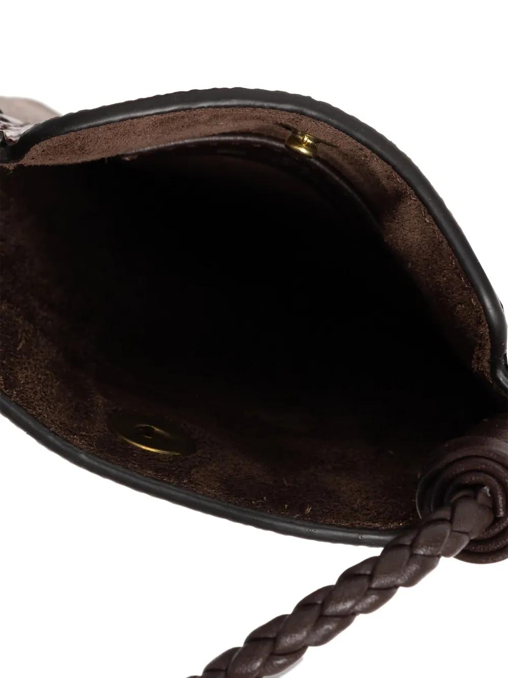 brown paisley pattern braided leather strap logo emblem snap fastening