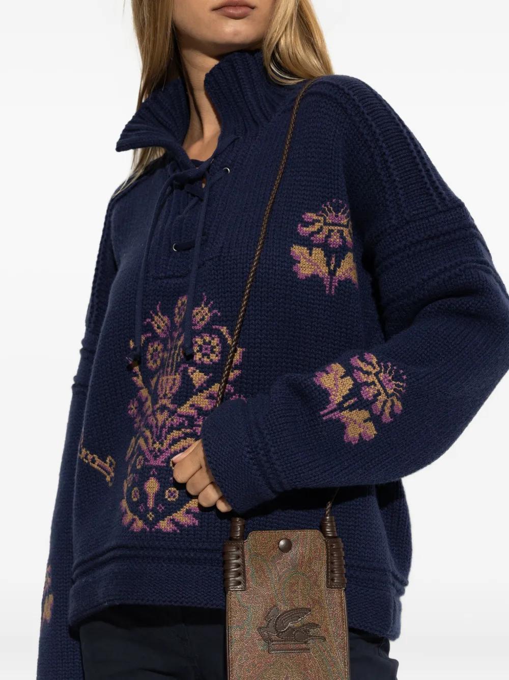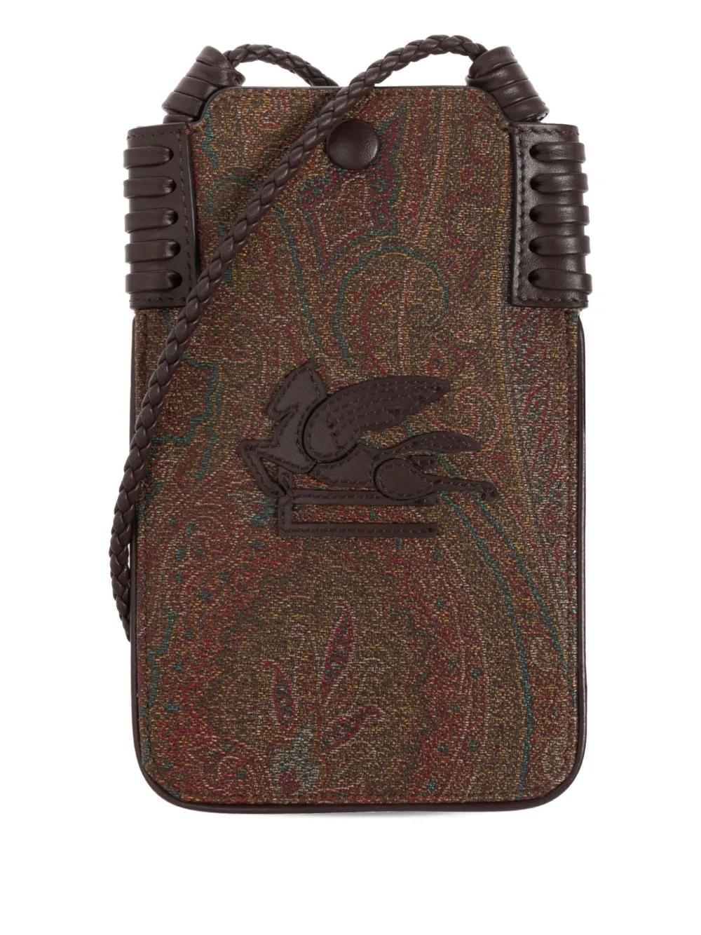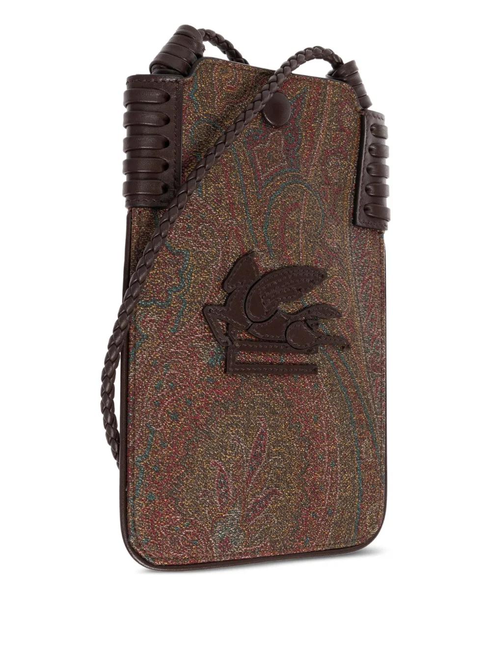 brown paisley pattern braided leather strap logo emblem snap fastening