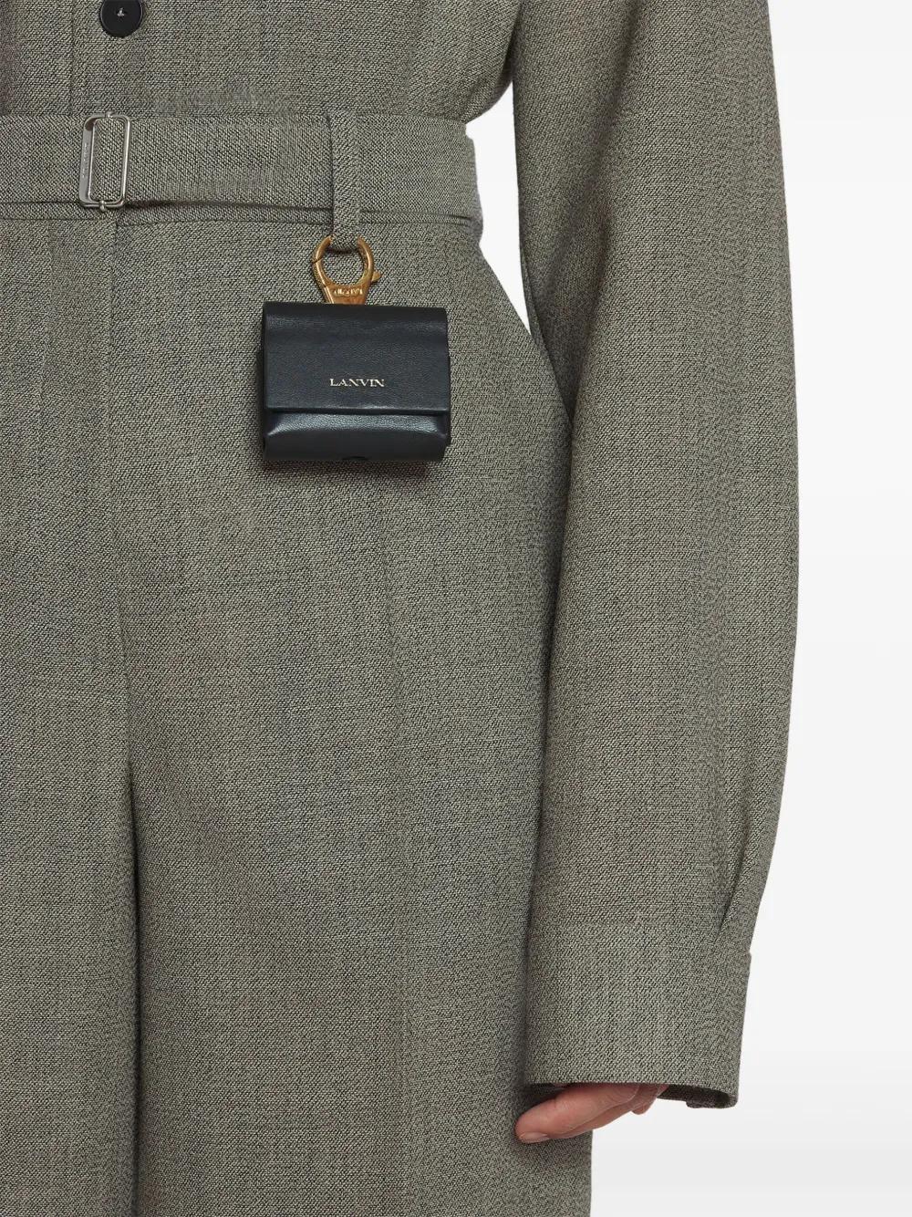 black calf leather signature numbers motif to the front keyring attachment silver-tone hardware front flap closure with clasp fastening