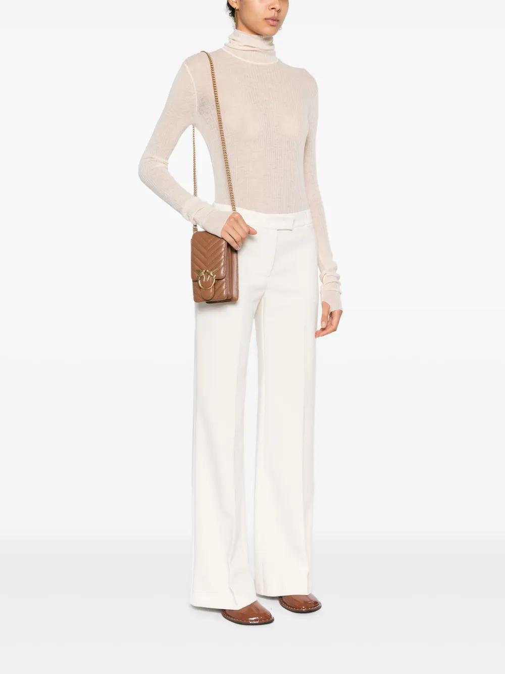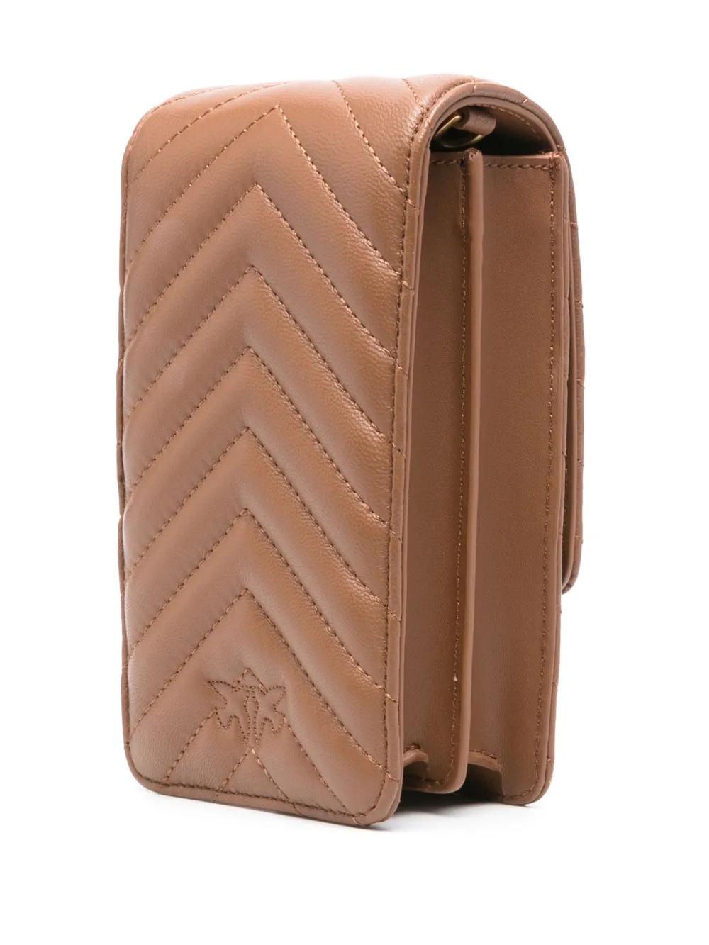 chocolate brown calf leather nappa leather chevron quilting signature Love Birds buckle foldover top with magnetic fastening detachable chain-link shoulder strap partitioned compartment debossed internal logo