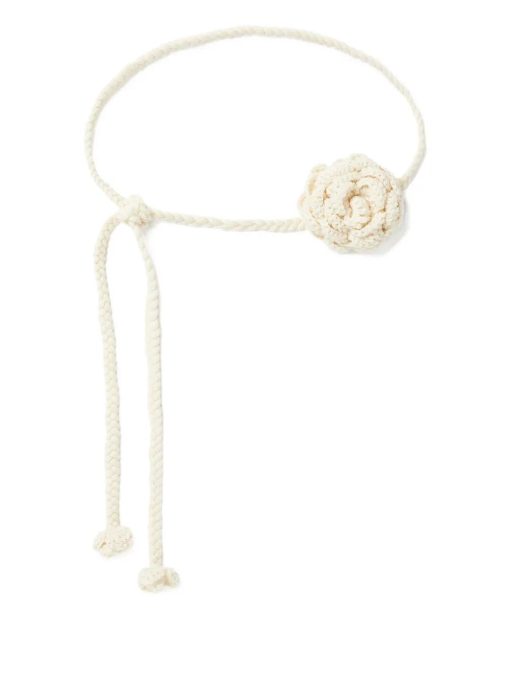 off-white wool braided rope crochet rose embellishment knotted ends tassel details