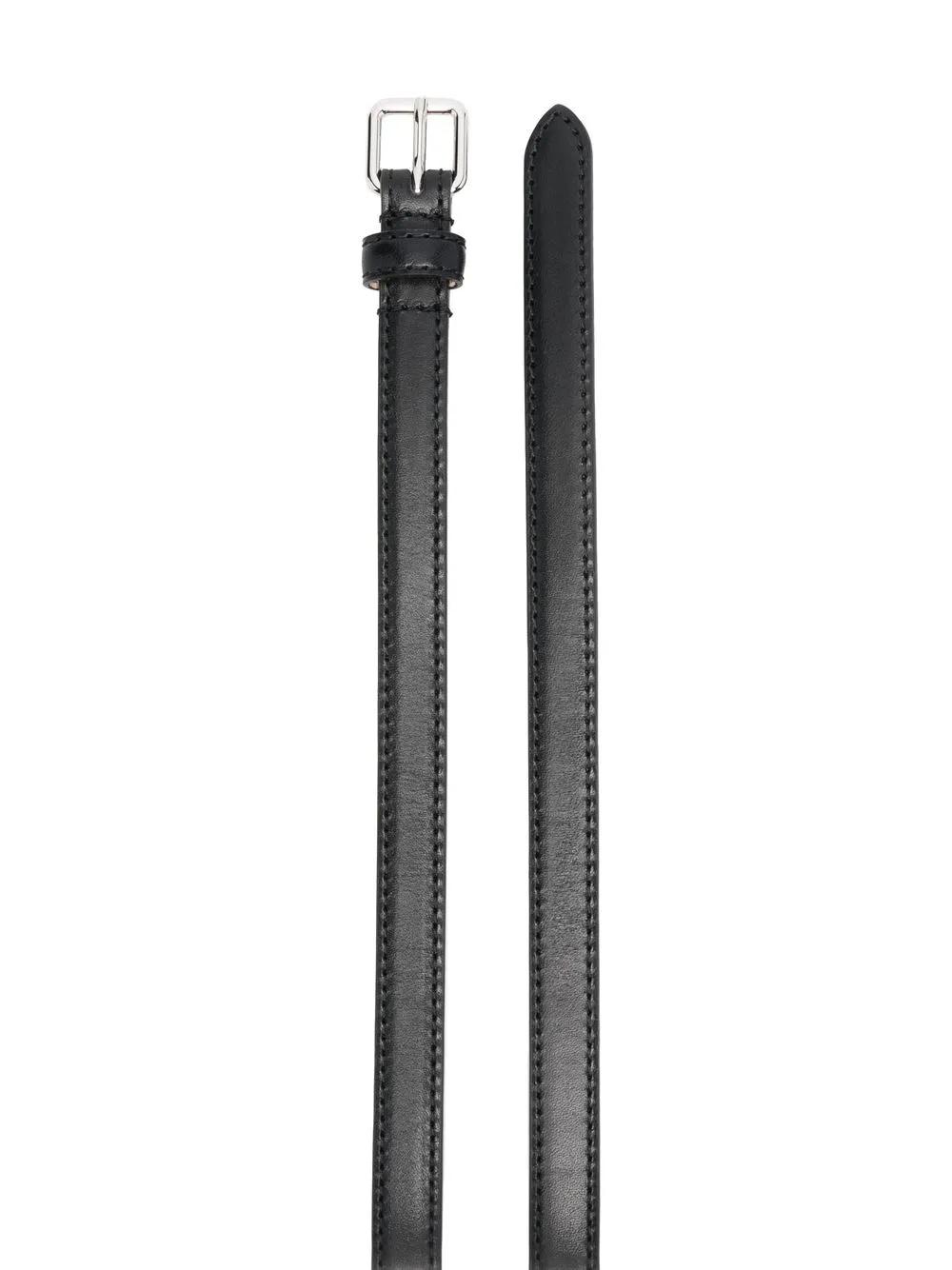 black leather silver-tone hardware tonal stitching punched holes buckle fastening