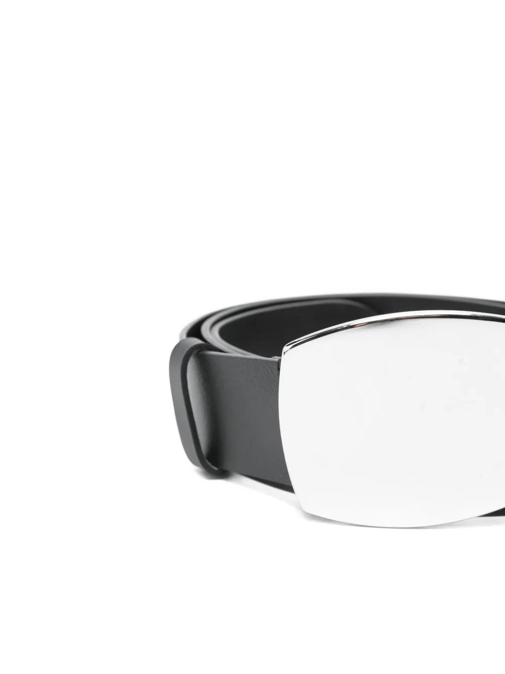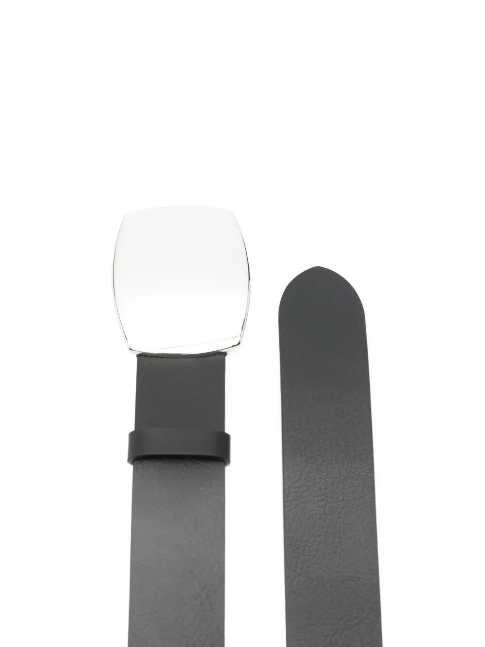 white buckle fastening distressed finish embossed logo punched holes adjustable fit
