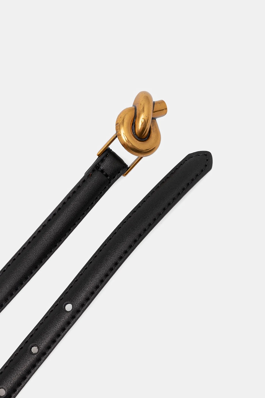 - Pasek zapinany na klamrę ze szpilką. - Długość paska: 107,5 cm. - Ilość dziurek: 10. - Szerokość paska: 1,5 cm. - Wymiary podane dla paska o rozmiarze: One.