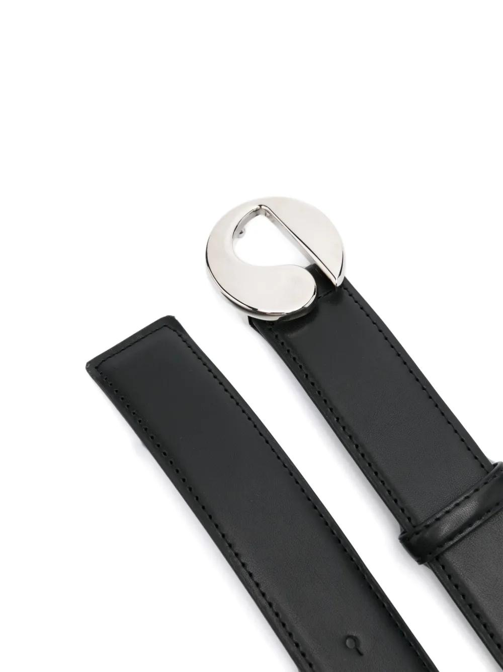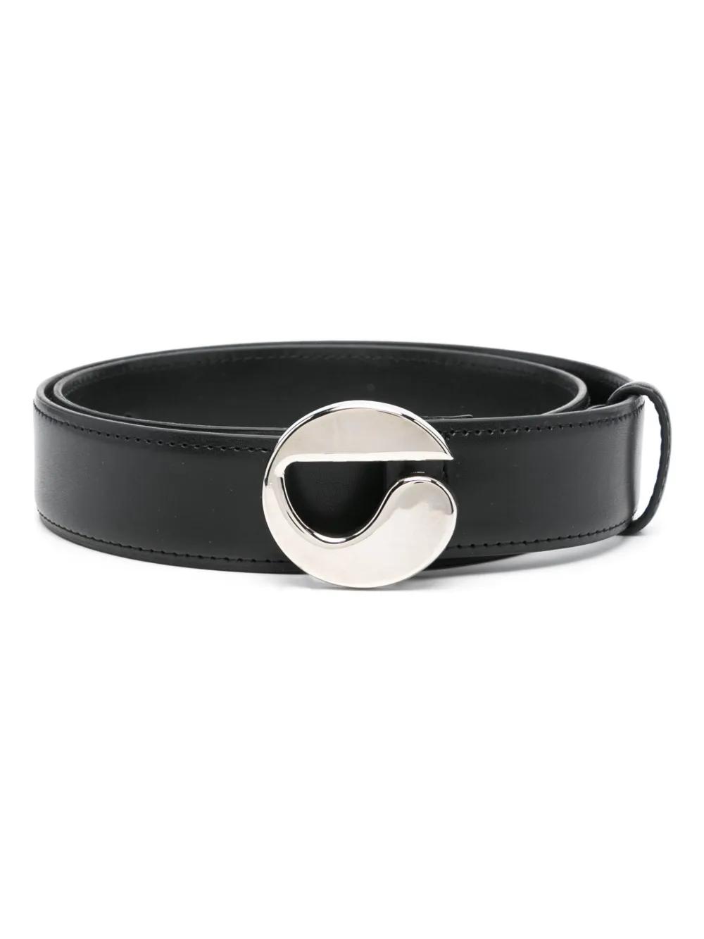 black calf leather brushed finish logo-buckle fastening punched holes flat tip