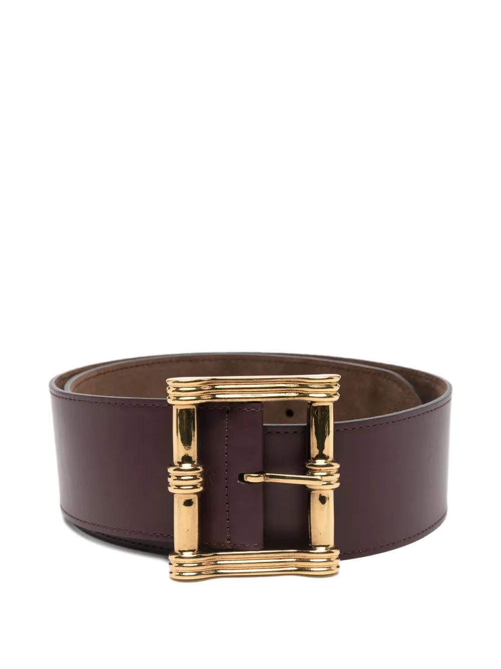brown gold-tone hardware buckle fastening pin fastening eyelet detailing