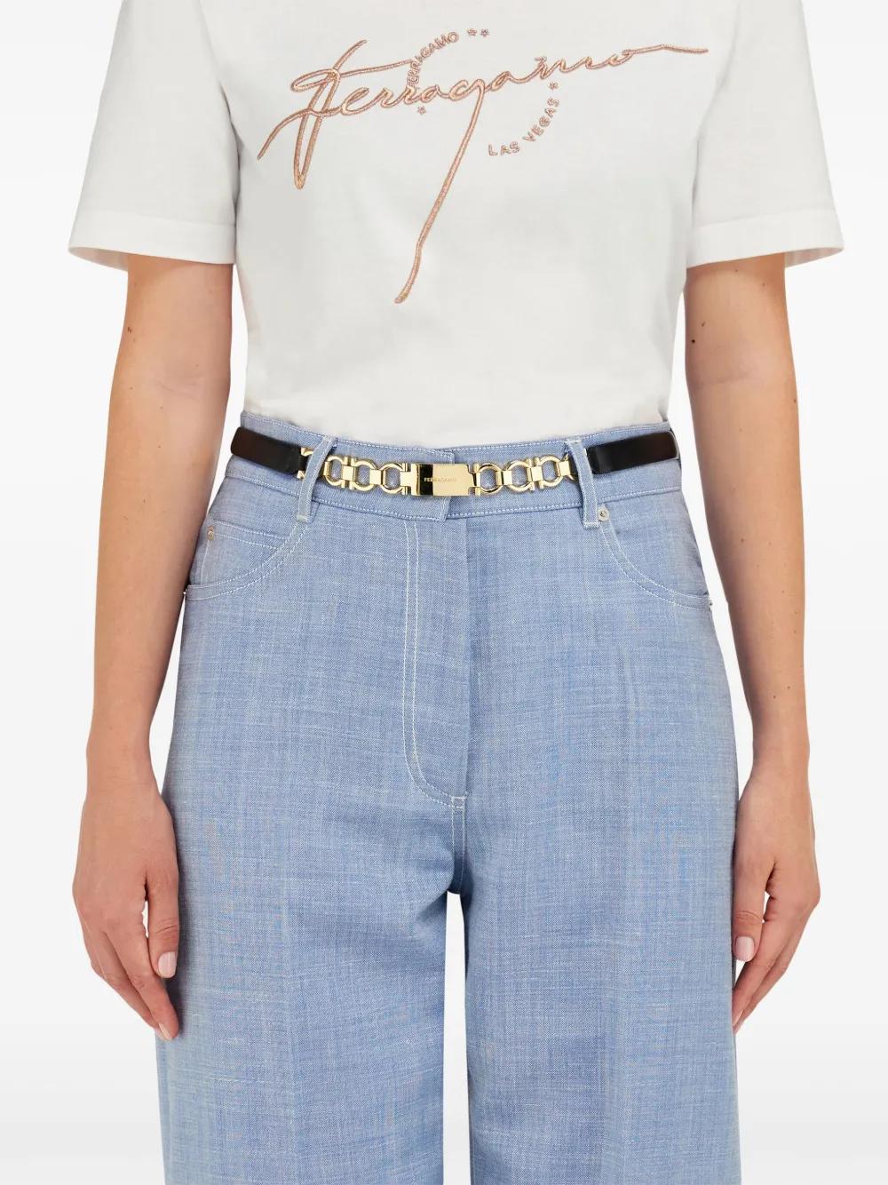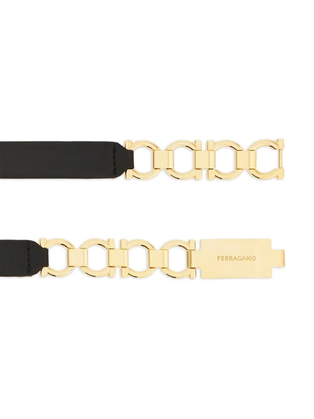 black gold-tone calf leather smooth grain Gancini plaque chain-link detailing engraved logo adjustable fit