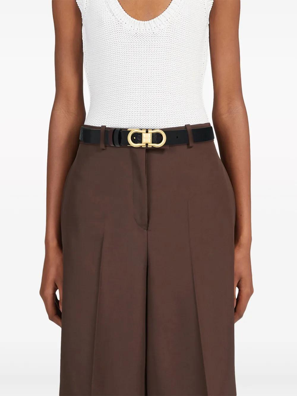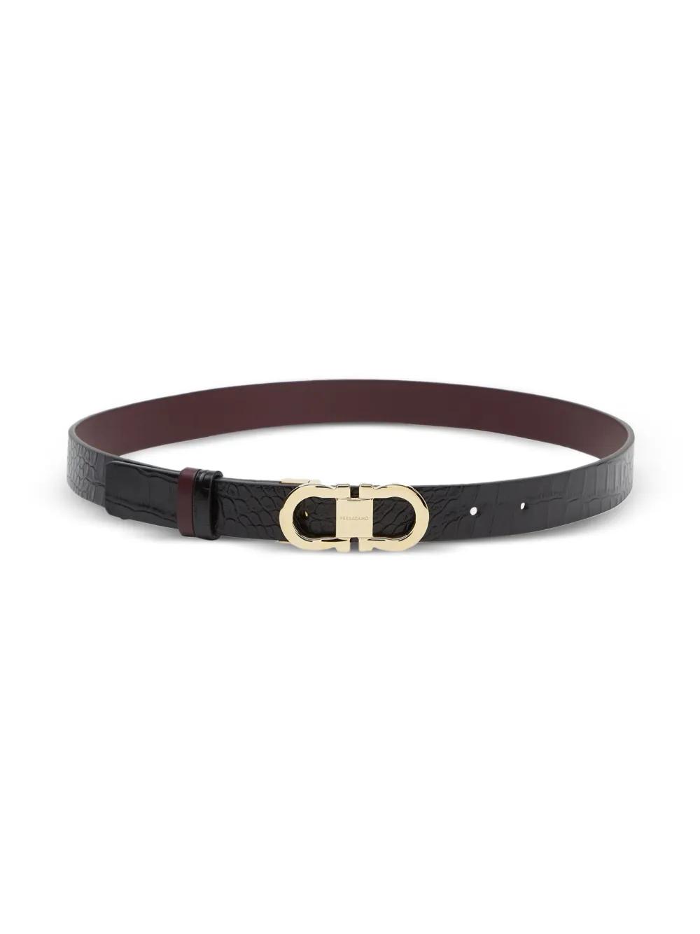 brown leather Gancini buckle embossed crocodile effect punched holes adjustable fit