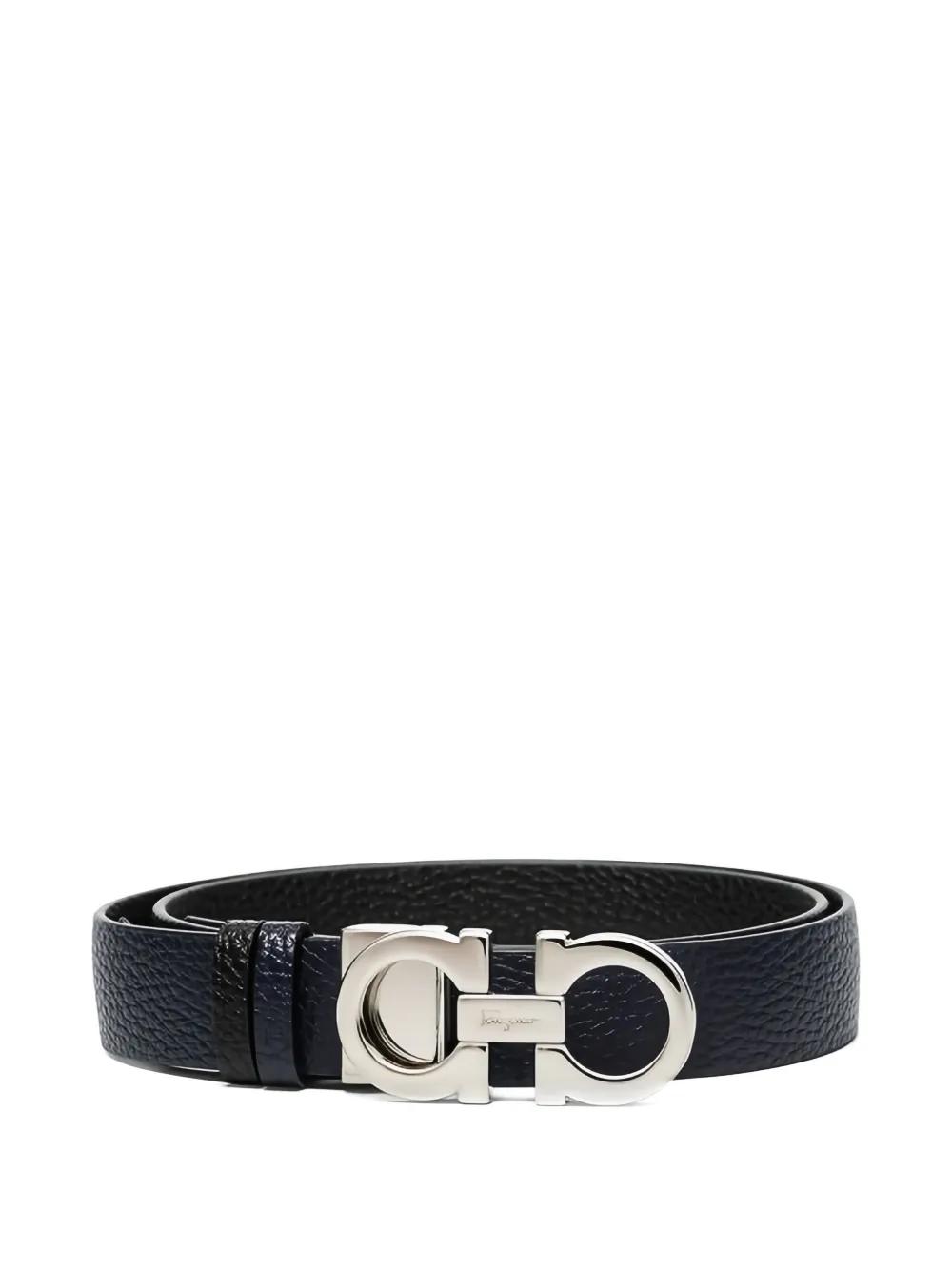 dark blue calf leather Gancini buckle textured leather silver-tone hardware