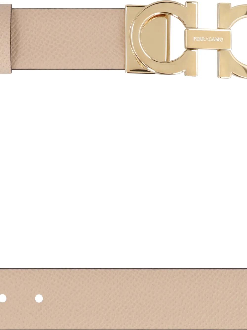 beige gold-tone Gancini buckle reversible design calf leather black leather reverse side belt loops
