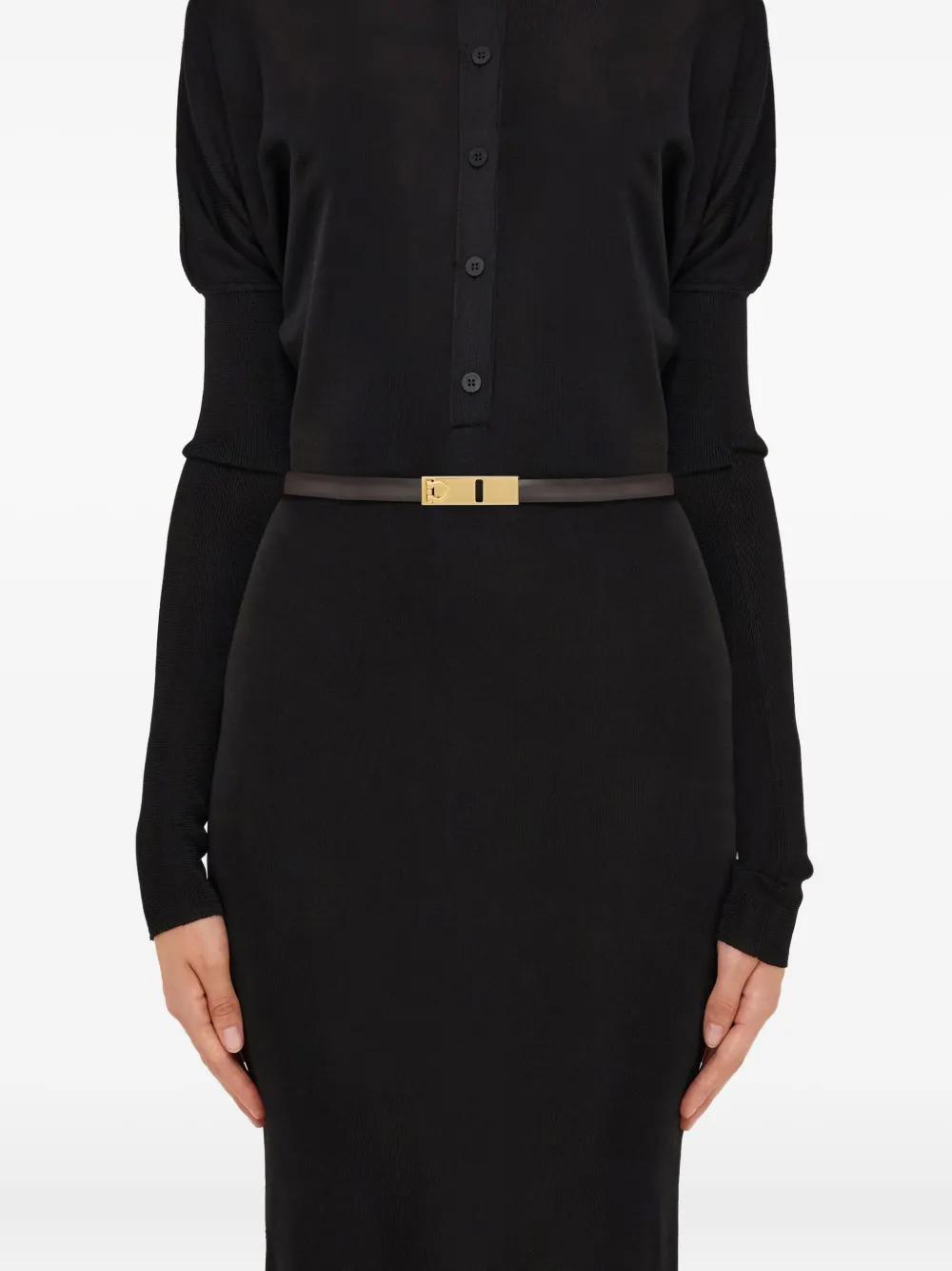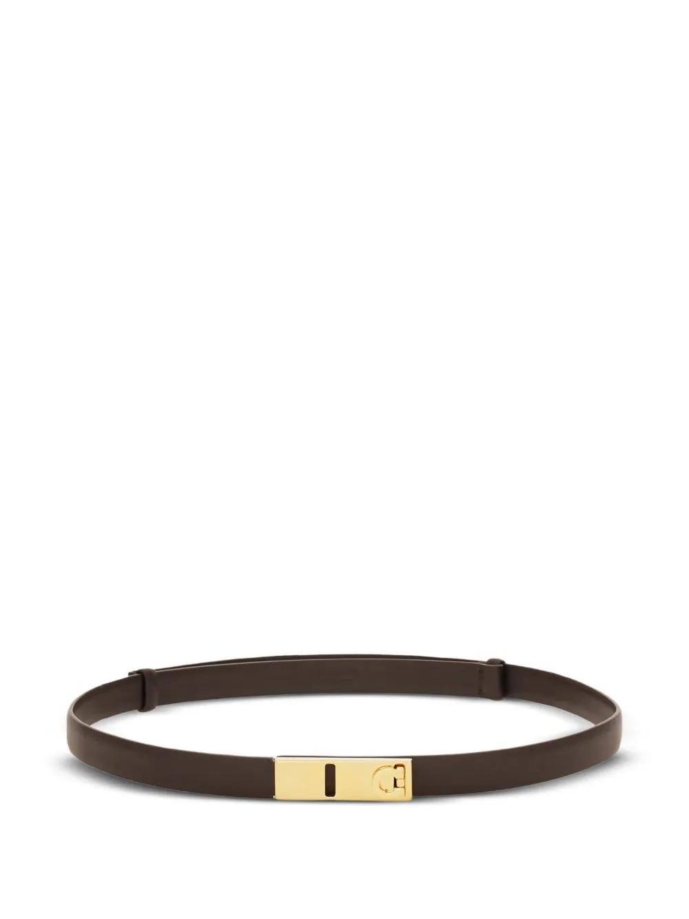 dark brown calfskin leather extendable geometric clasp gold-tone hardware