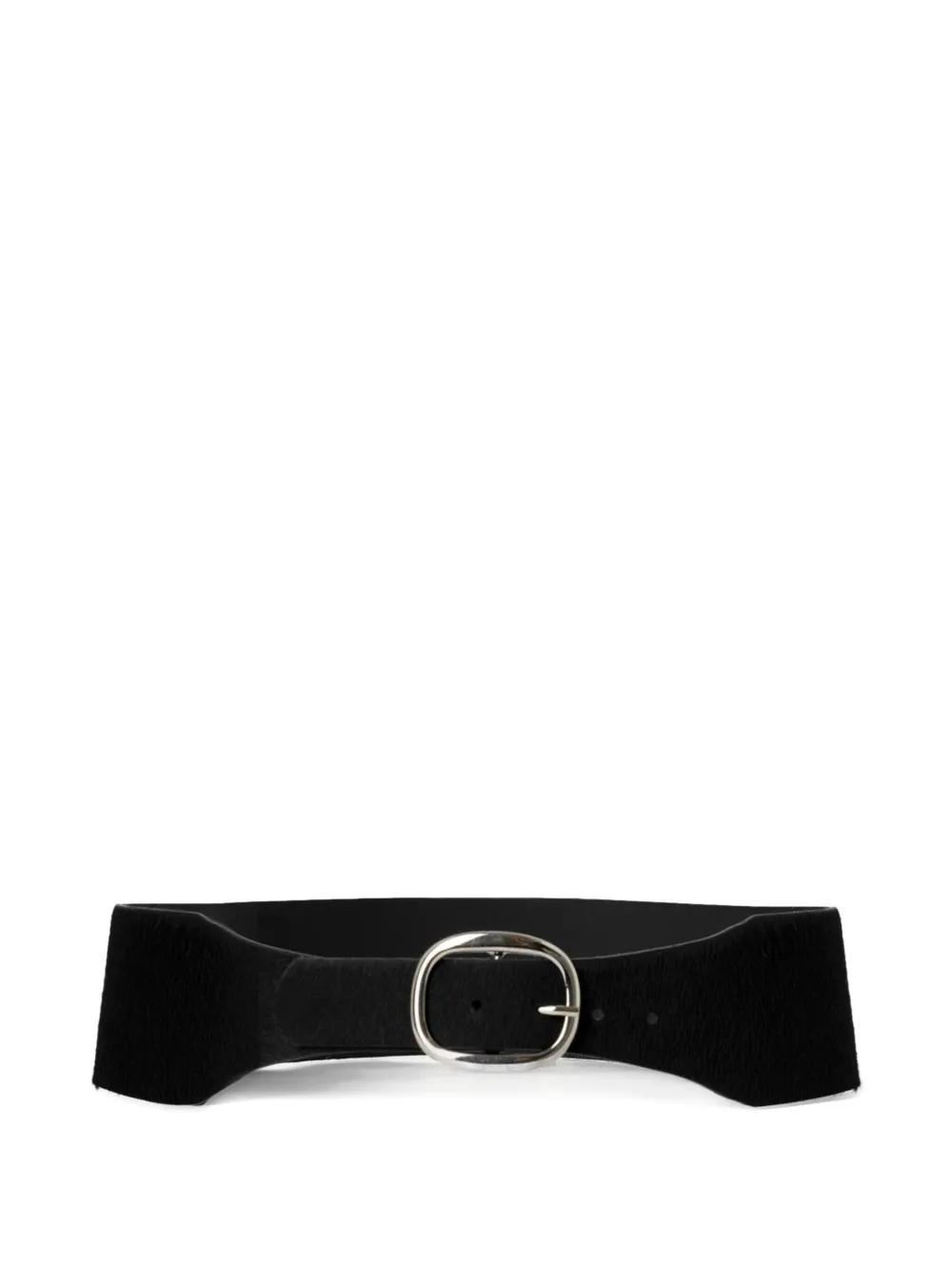 cognac brown calf leather smooth grain Gancini plaque front buckle fastening punched holes flat tip adjustable fit