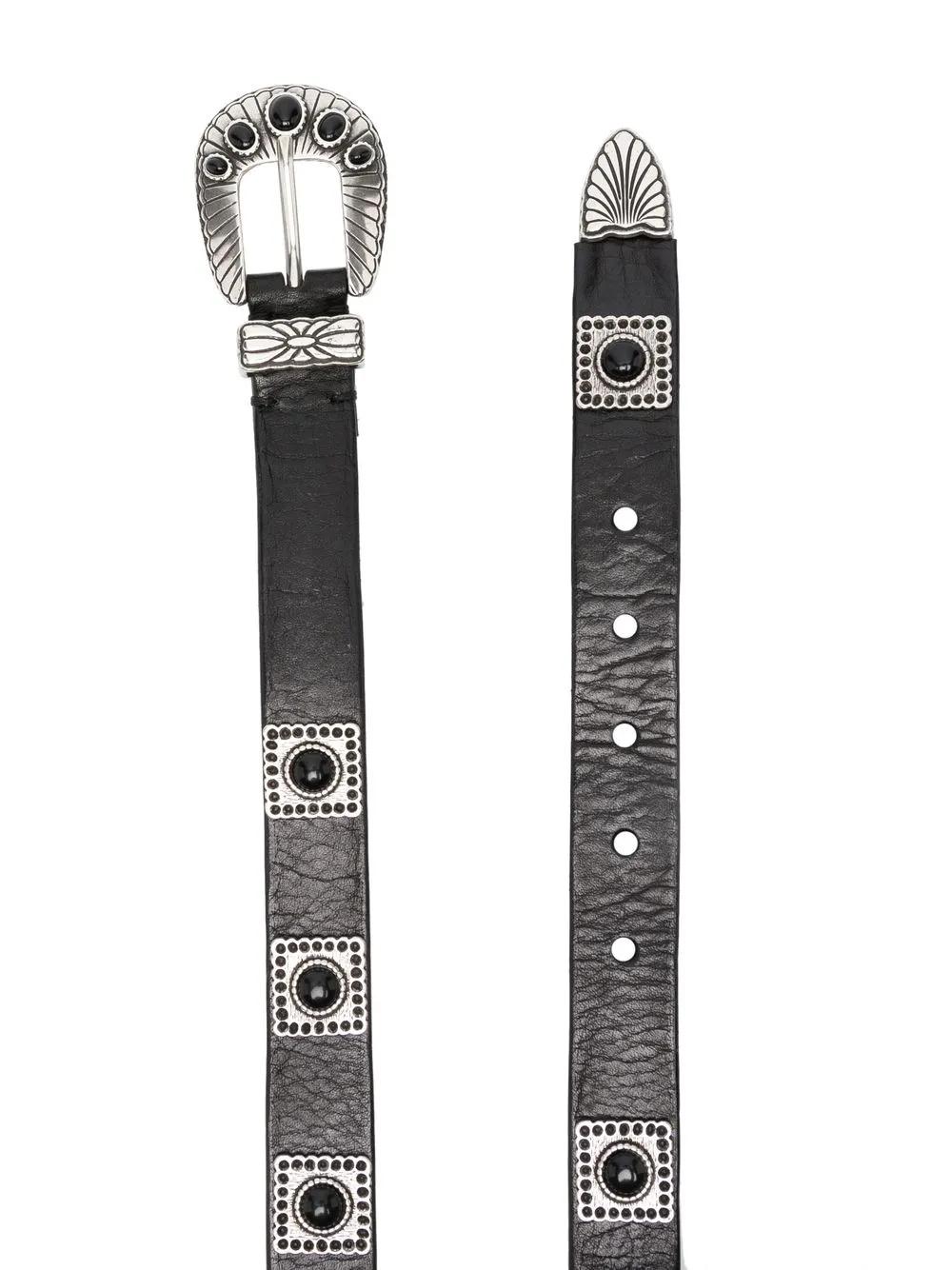 black leather silver-tone hardware stud embellishment silver-tone buckle fastening adjustable fit