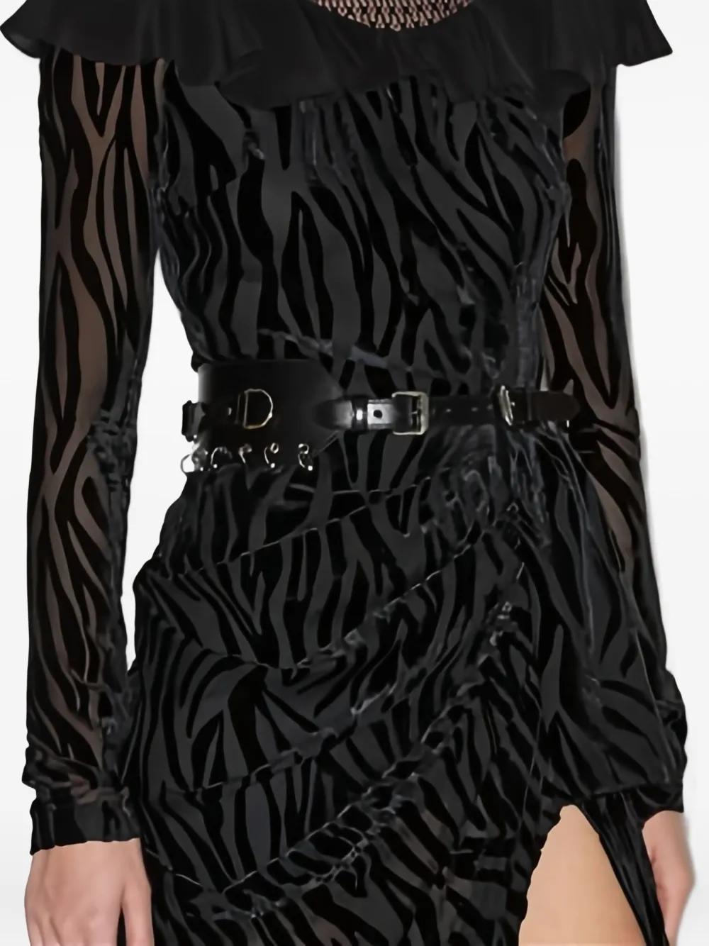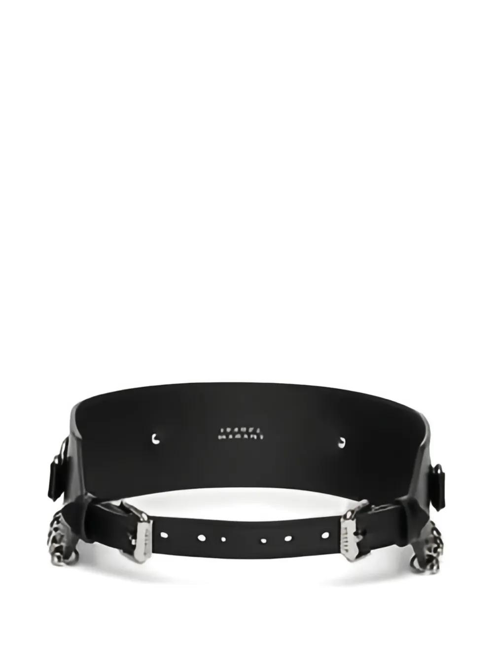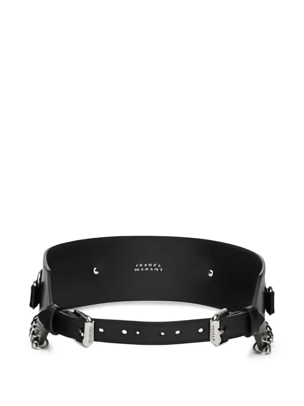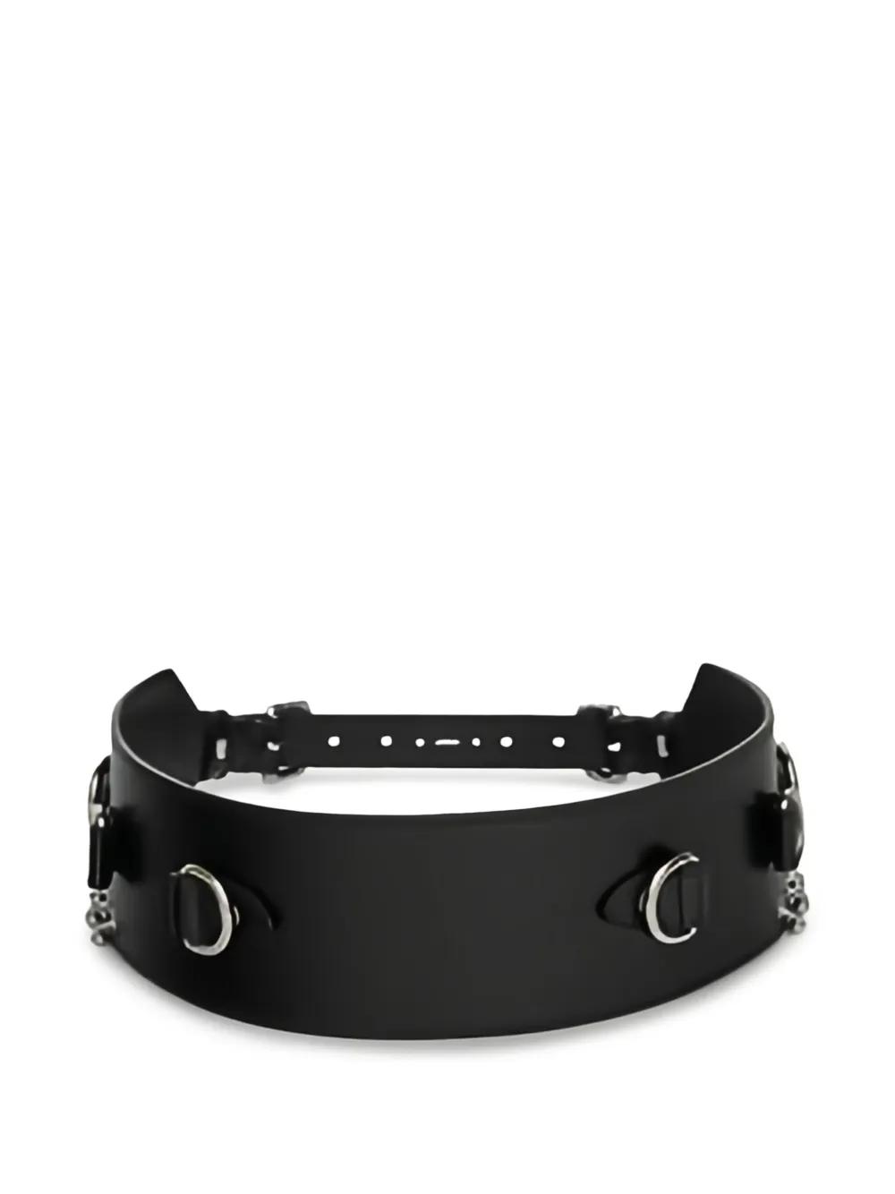 black cow leather three D-rings chain detail buckle fastening pin detail