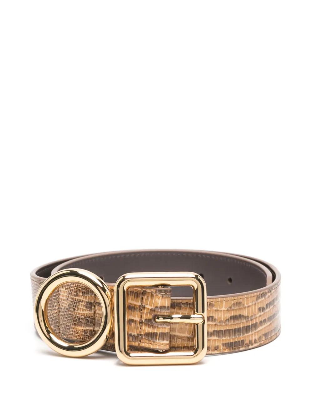 sand beige tang-buckle fastening punched holes ring hardware detailing lizard-skin effect
