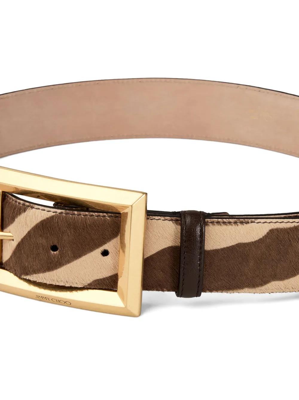 beige zebra print calf leather gold-tone buckle rectangular buckle five belt holes
