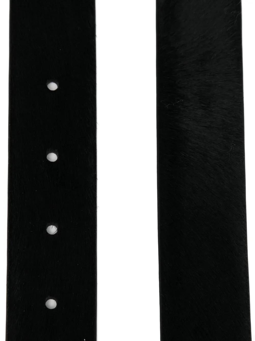 black pin-buckle fastening haircalf texture gold-tone hardware adjustable fit