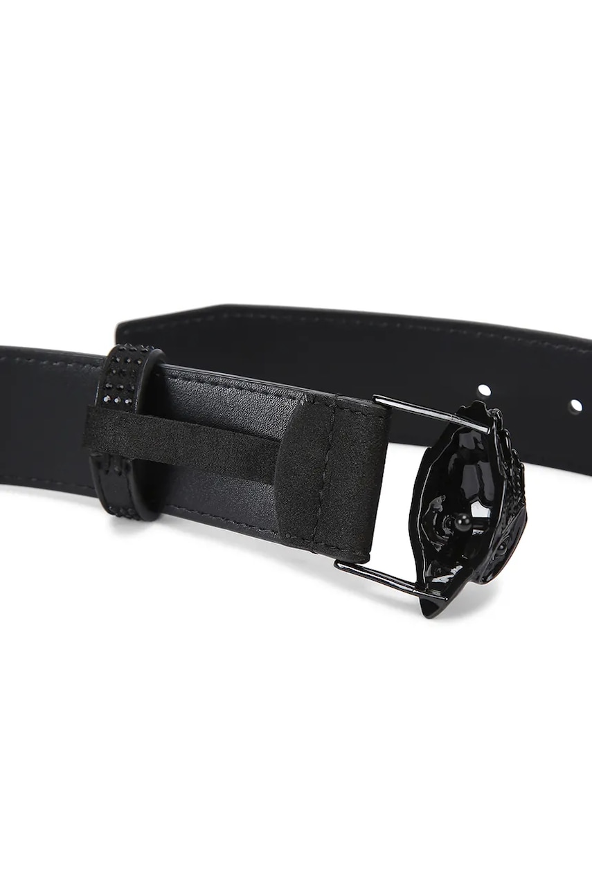 - Model z ozdobną klamrą. - Model z dżetami. - Ilość dziurek: 7. - Szerokość paska: 3,5 cm. - Długość minimalna paska: 78 cm. - Długość maksymalna paska: 93 cm. - Wymiary podane dla paska o rozmiarze: S/M.