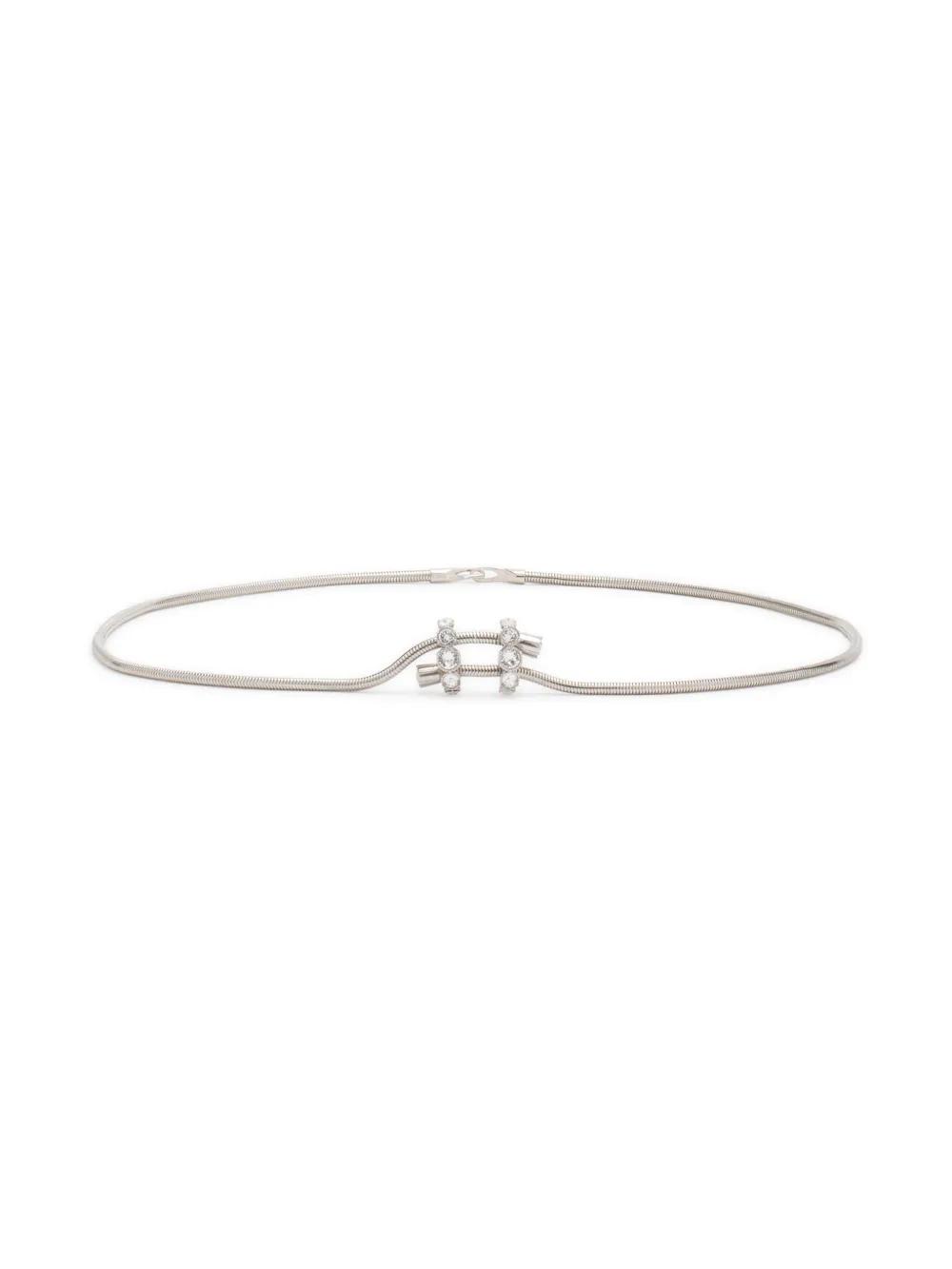 silver-tone brass crystal embellishment flower-shaped loops hook fastening adjustable fit