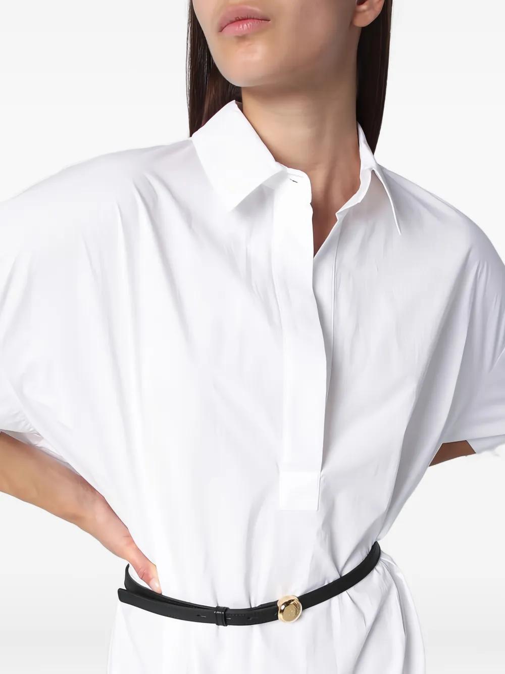 black leather construction gold-tone logo circular buckle slim width