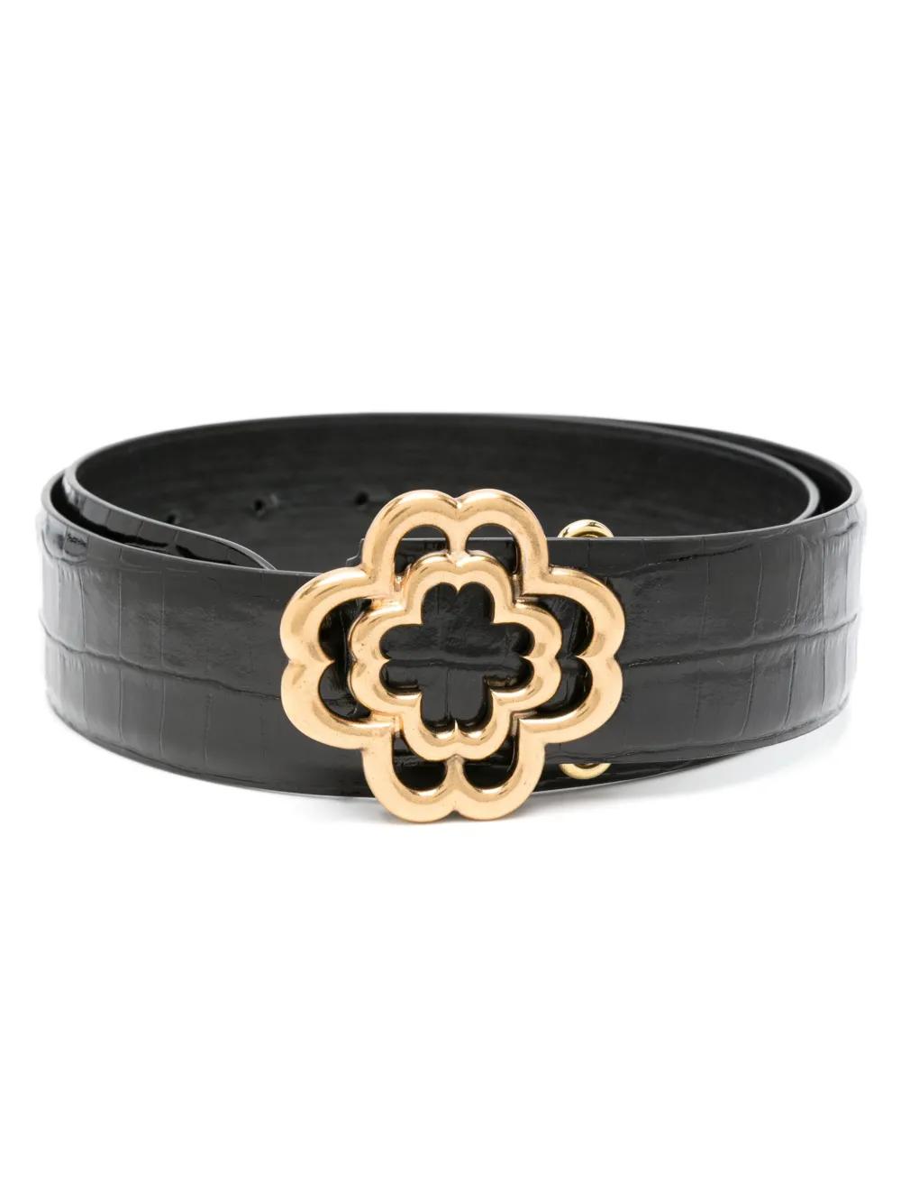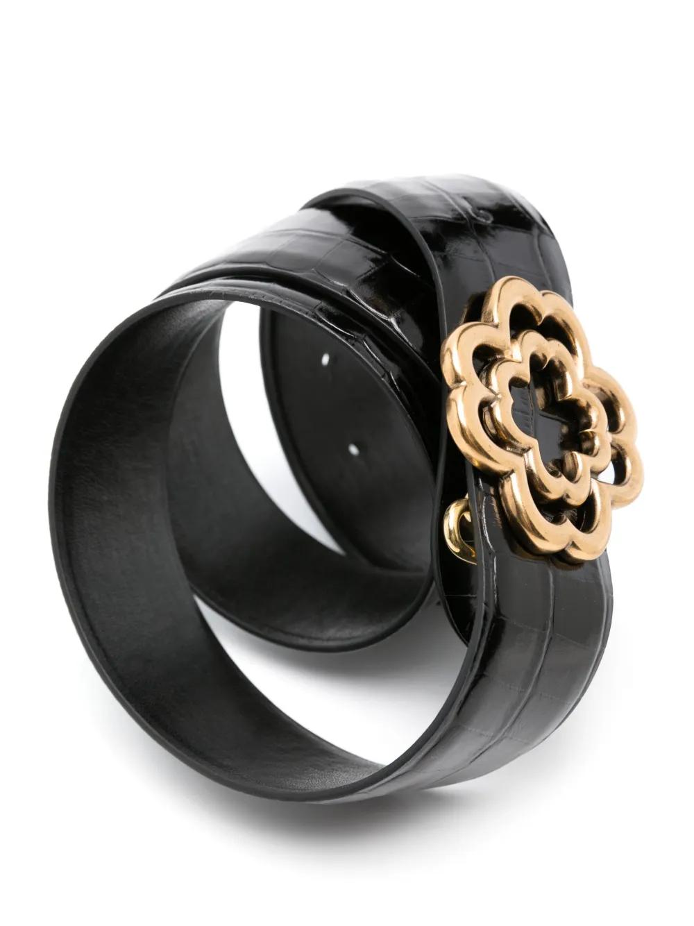 black calf leather embossed crocodile effect signature Lucky Four Leaf Clover motif gold-tone hardware adjustable fit logo-buckle fastening punched holes This piece comes complete with a protective dust bag.