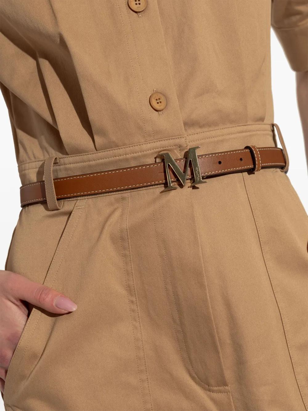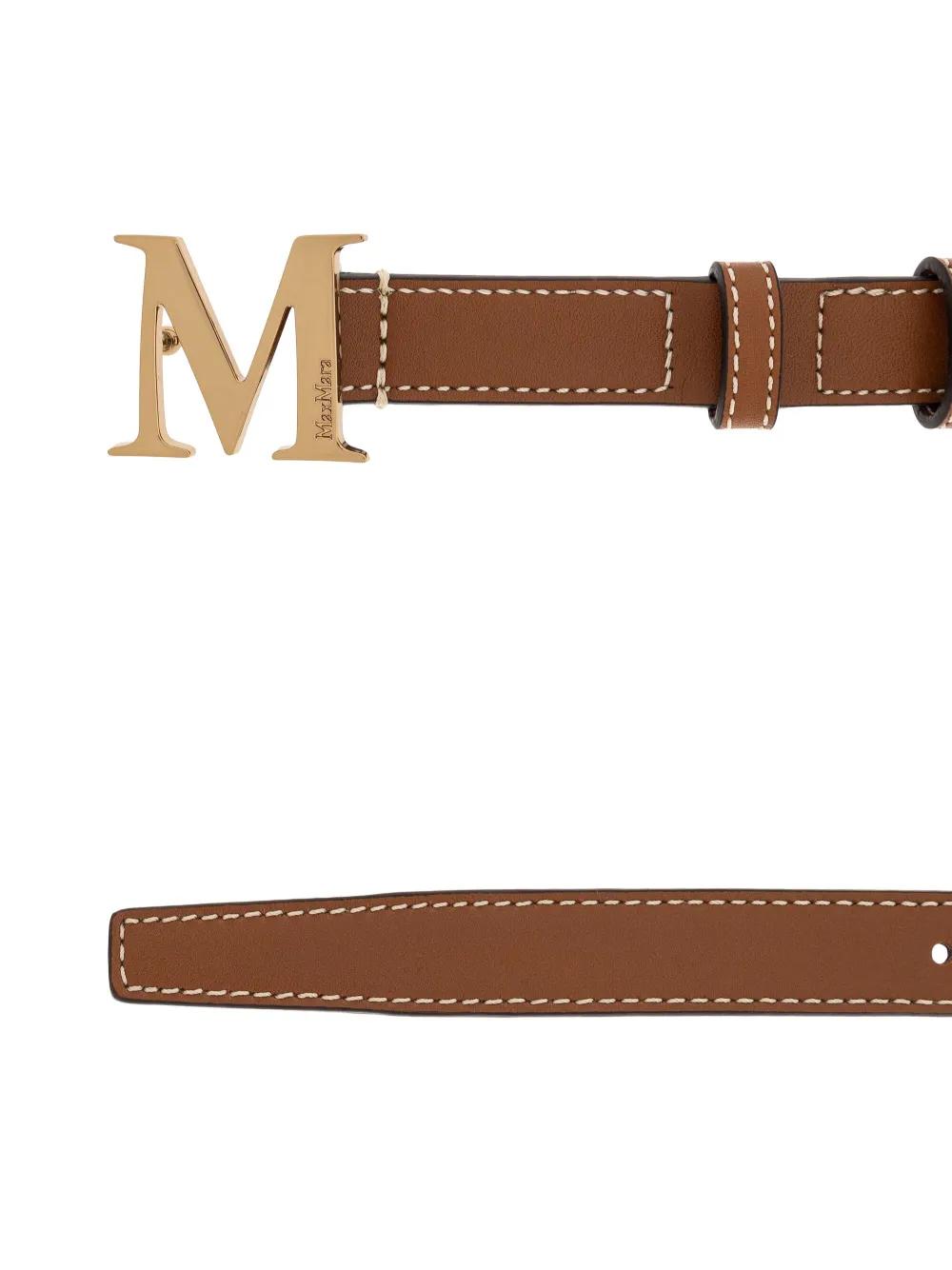 caramel brown logo-buckle fastening single loop contrast stitching adjustable fit