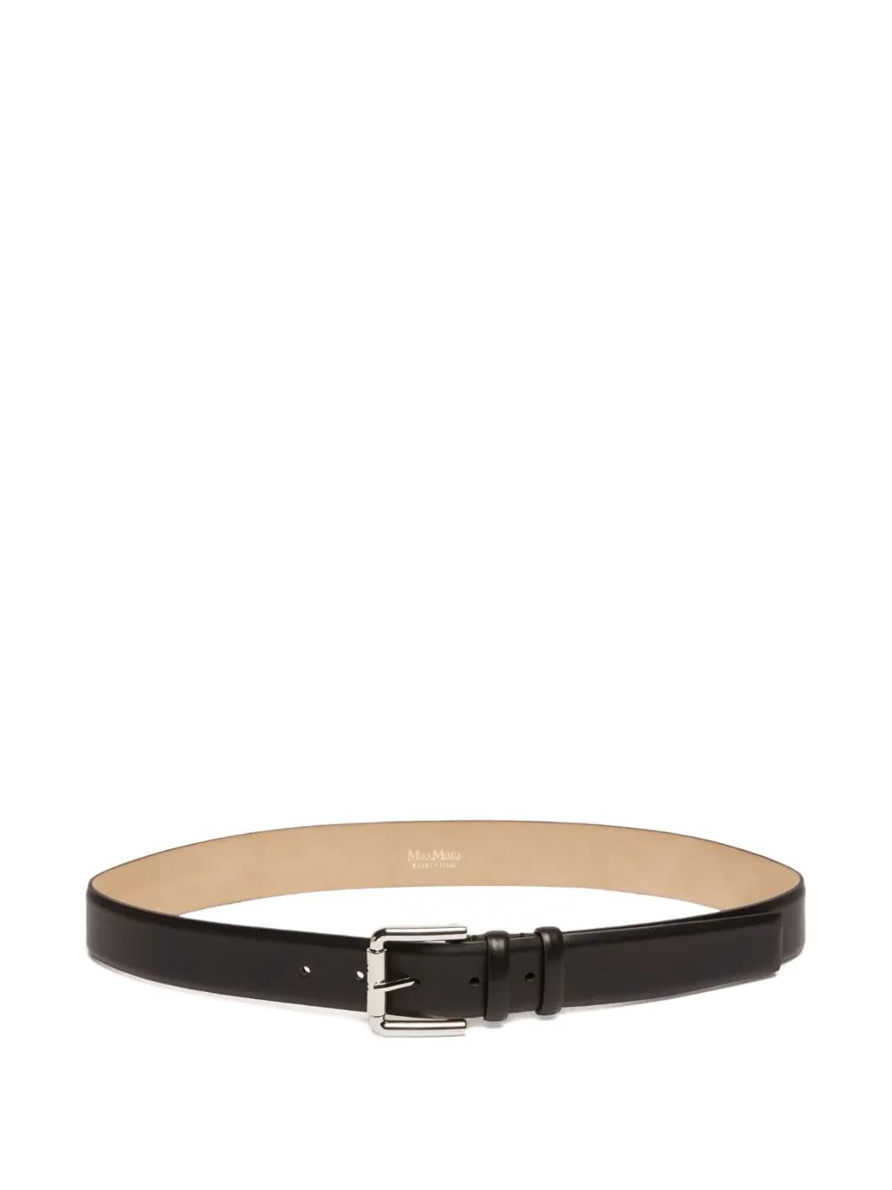 black calfskin leather metal buckle logo detail rectangular buckle simple design