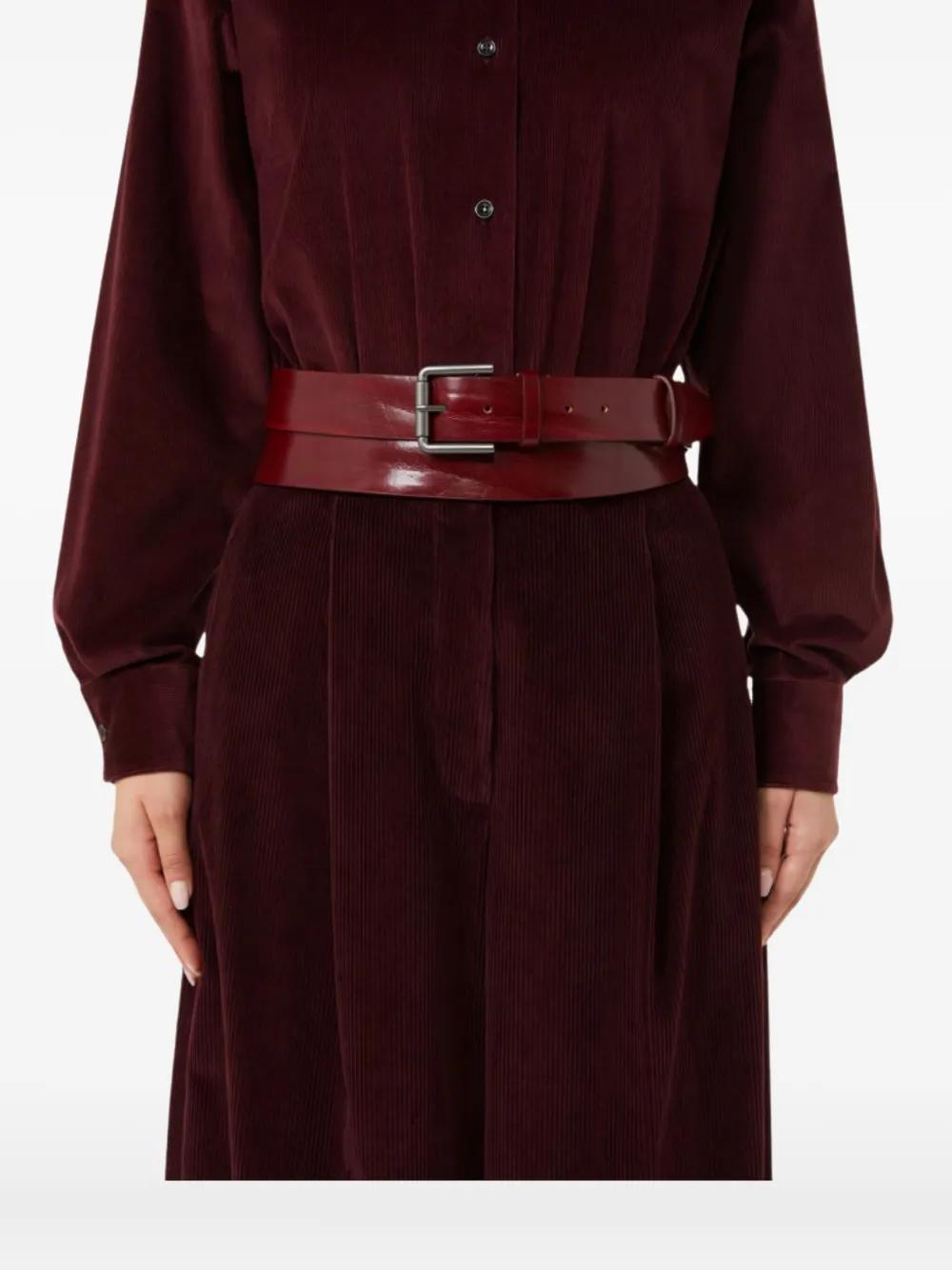 dark red leather square buckle subtle texture single-prong buckle belt loops