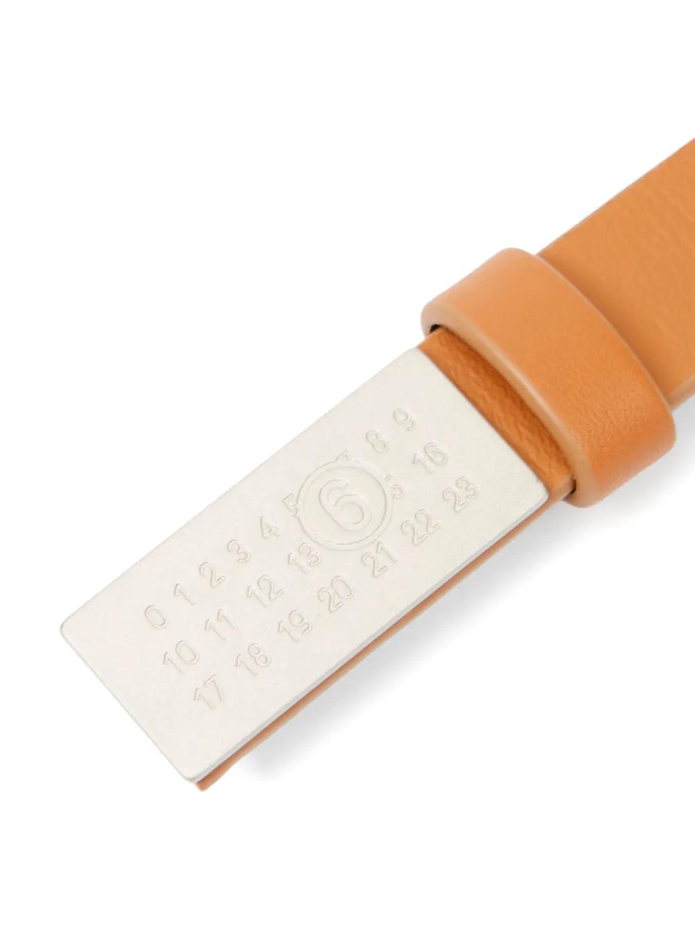 butterscotch brown calf leather signature numbers motif logo-buckle fastening punched holes adjustable fit