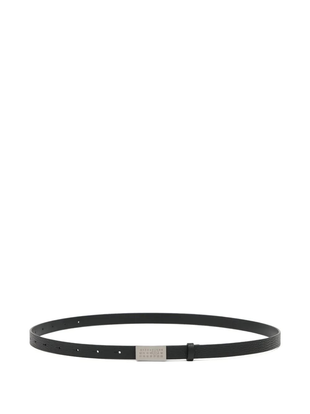black calf leather numeric plaque detail adjustable length pin buckle fastening
