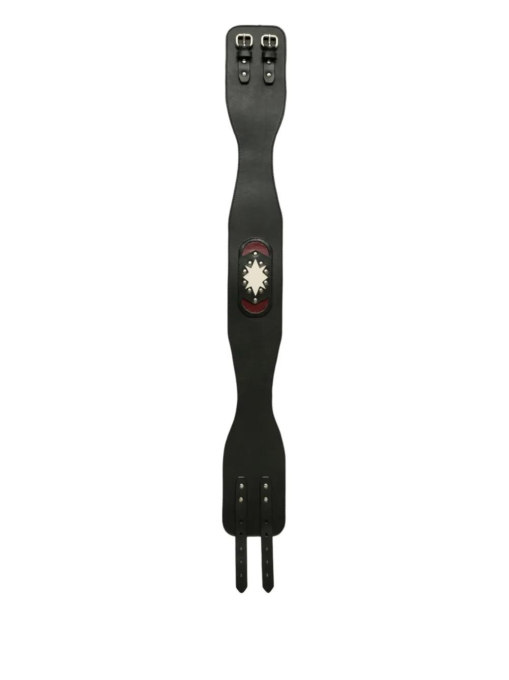 black decorative plaque buckle fastening silver-tone hardware eyelet detailing