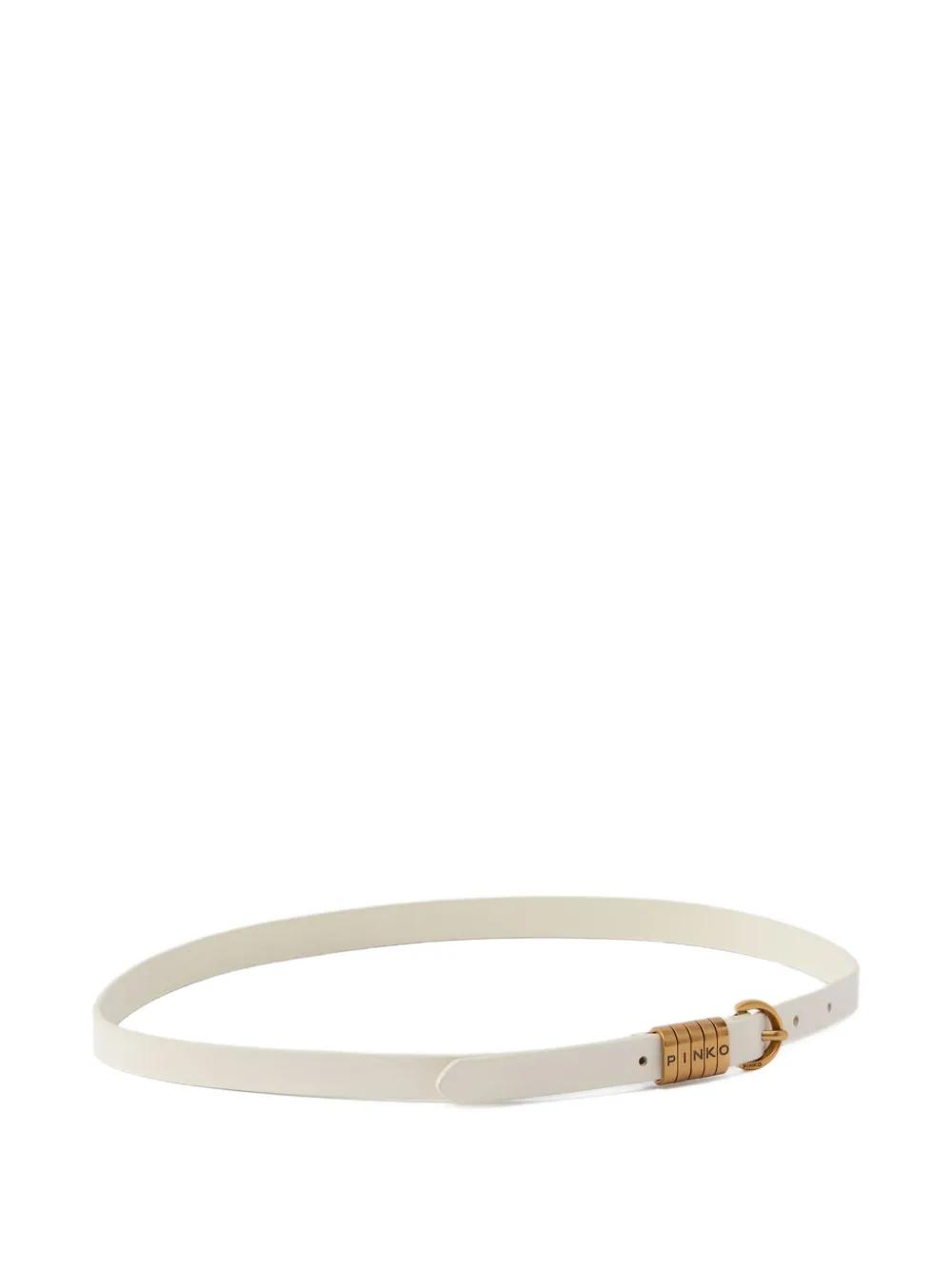white ring embellishment buckle fastening adjustable fit gold-tone hardware pin closure