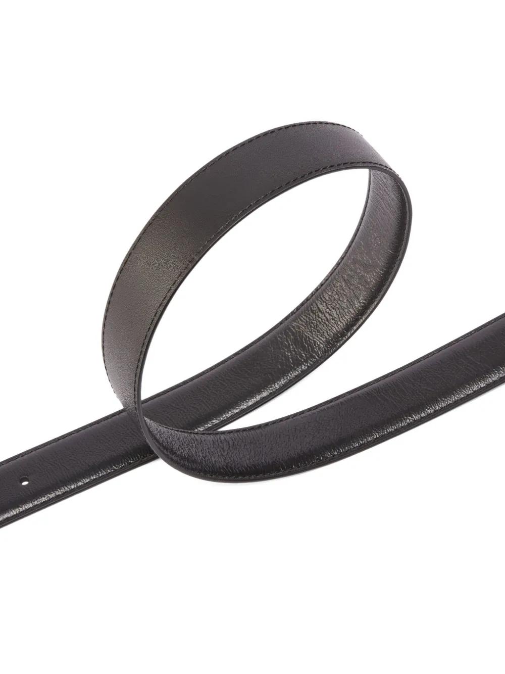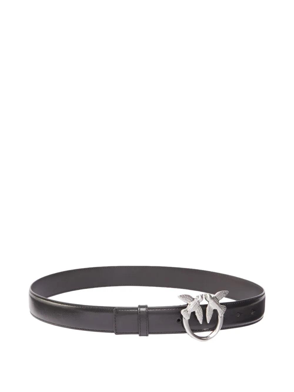 black leather silver-tone Love Birds buckle belt loops leather strap