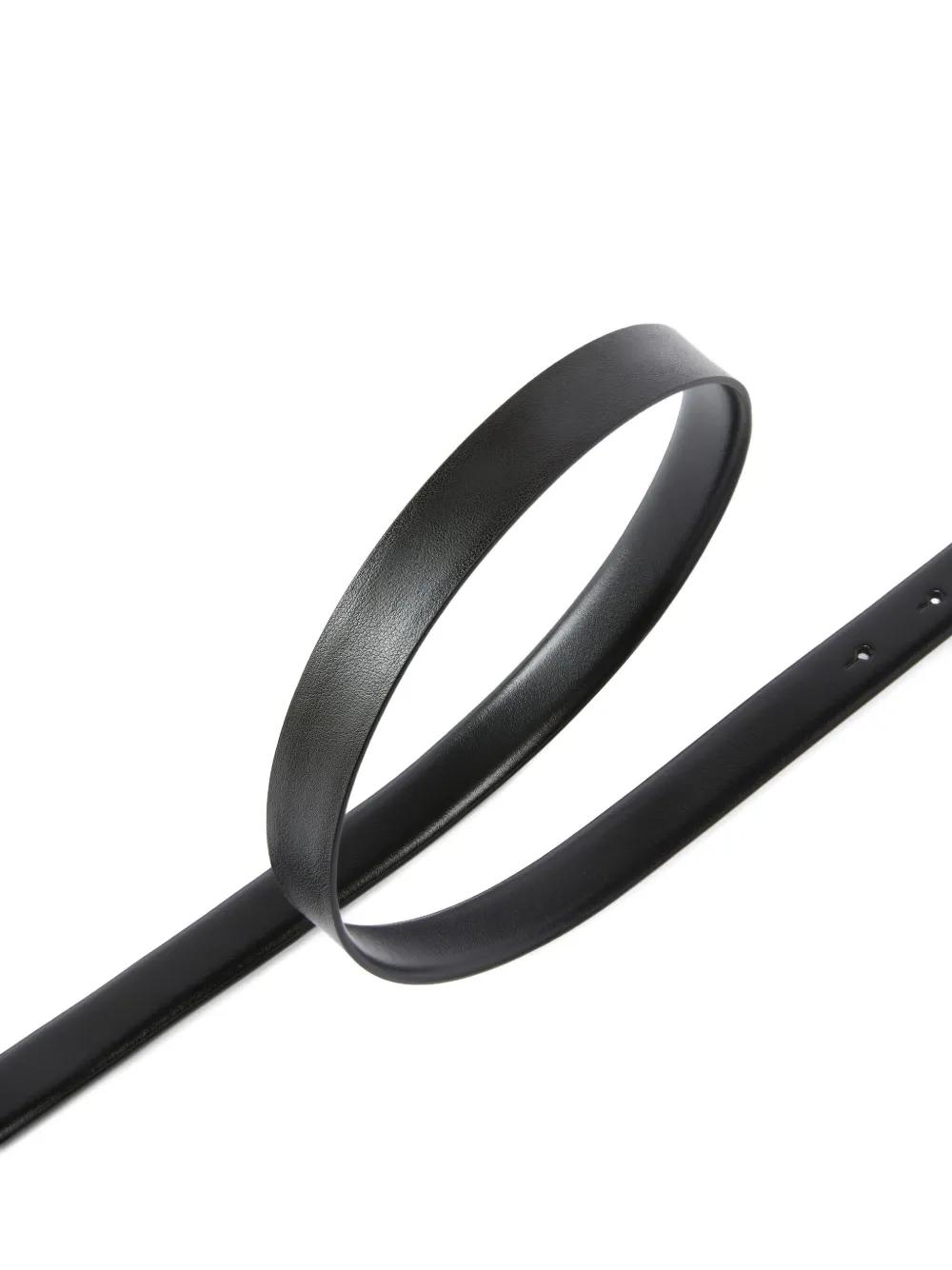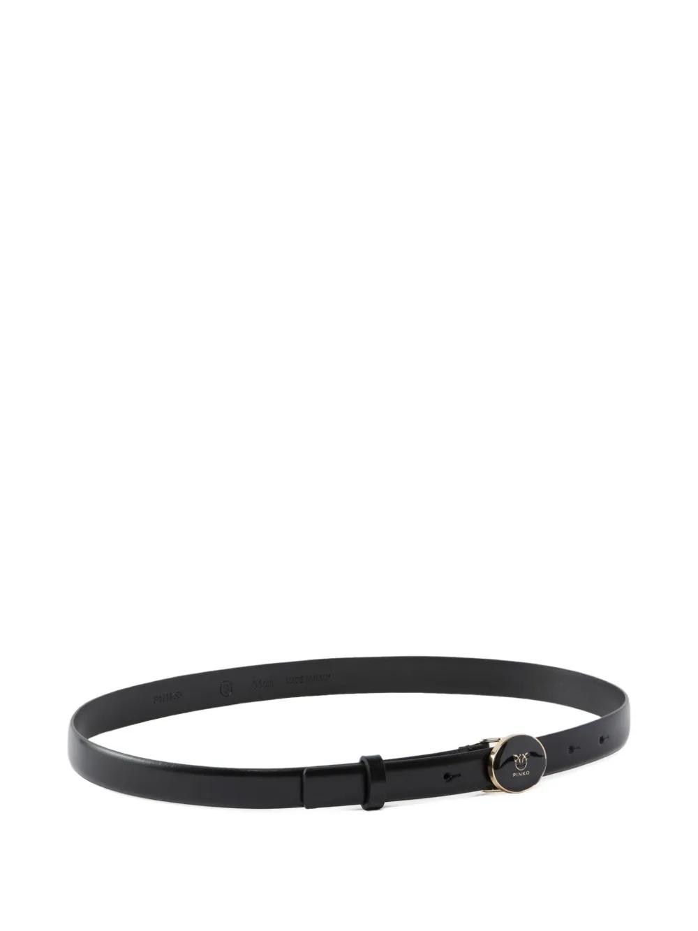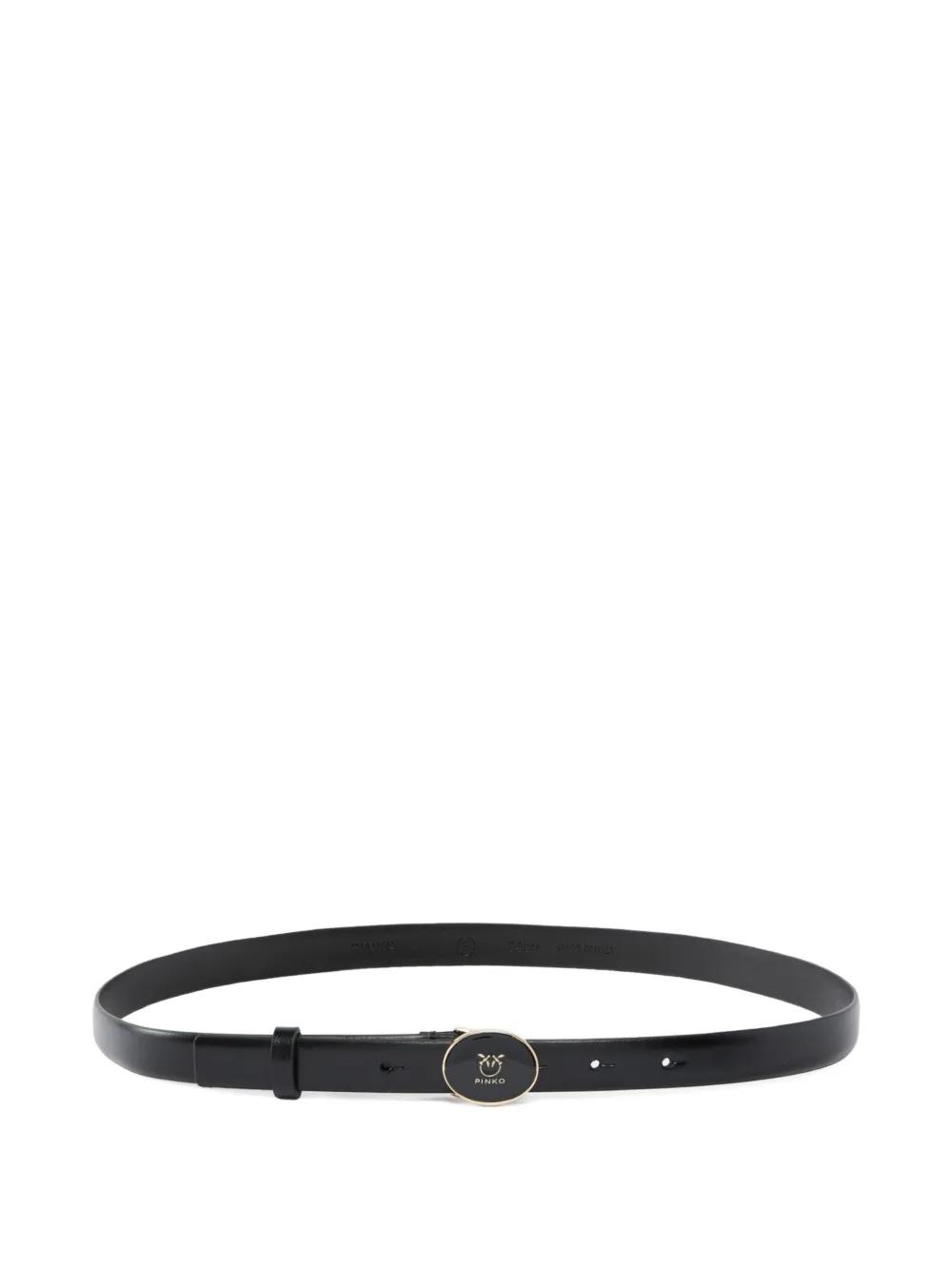 black gold-tone hardware logo buckle adjustable fit pin buckle fastening punched holes