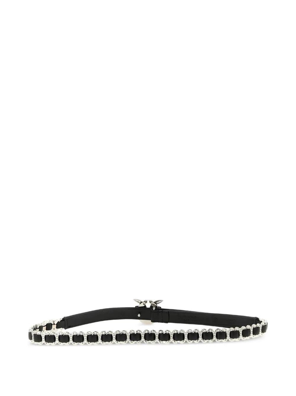 PINKO Love Birds rhinestone-embellished leather belt - Black