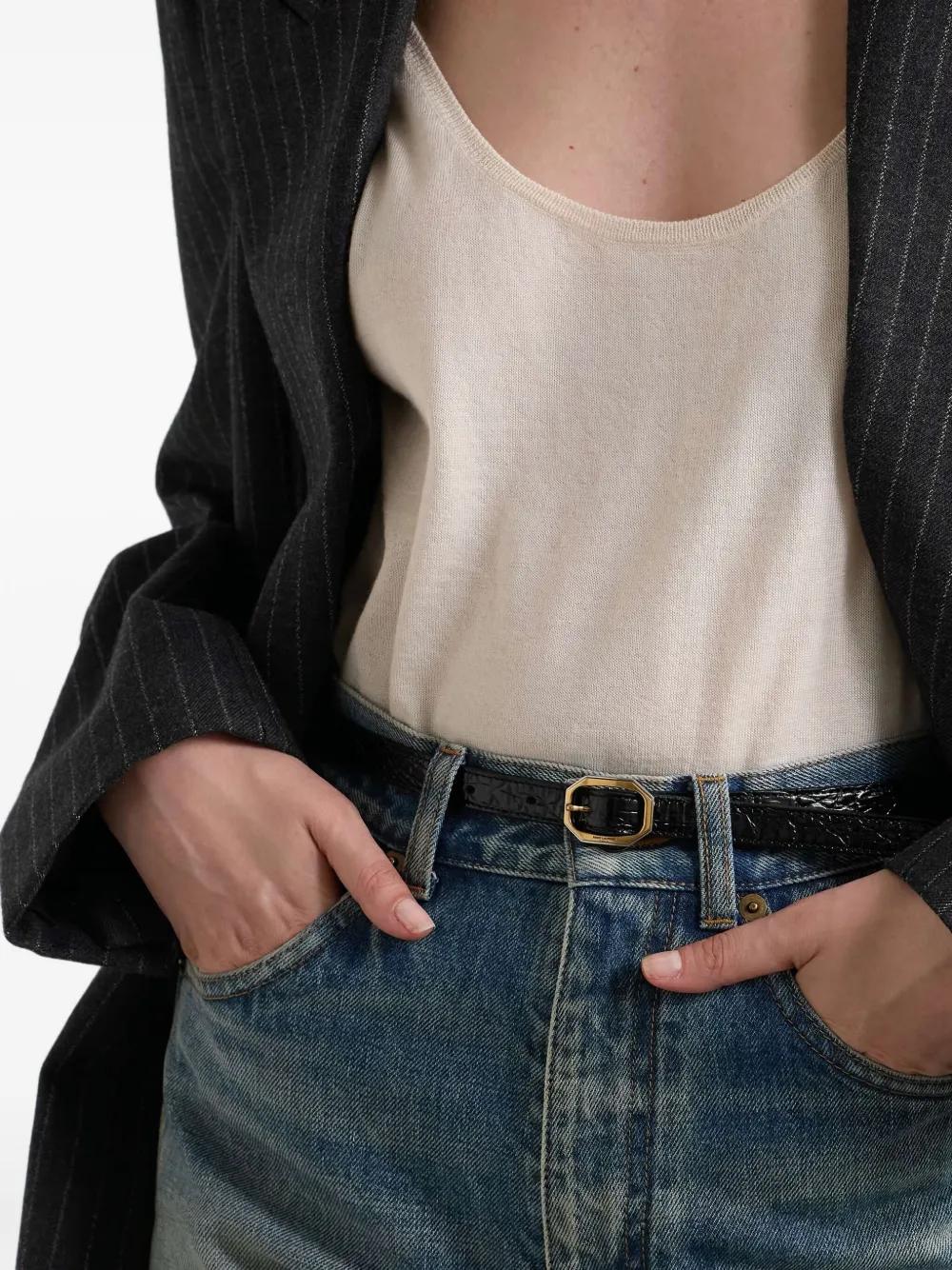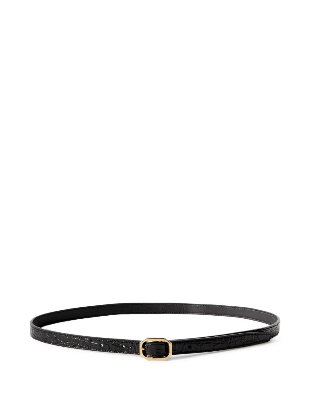 black buckle fastening embossed crocodile effect punched holes adjustable fit