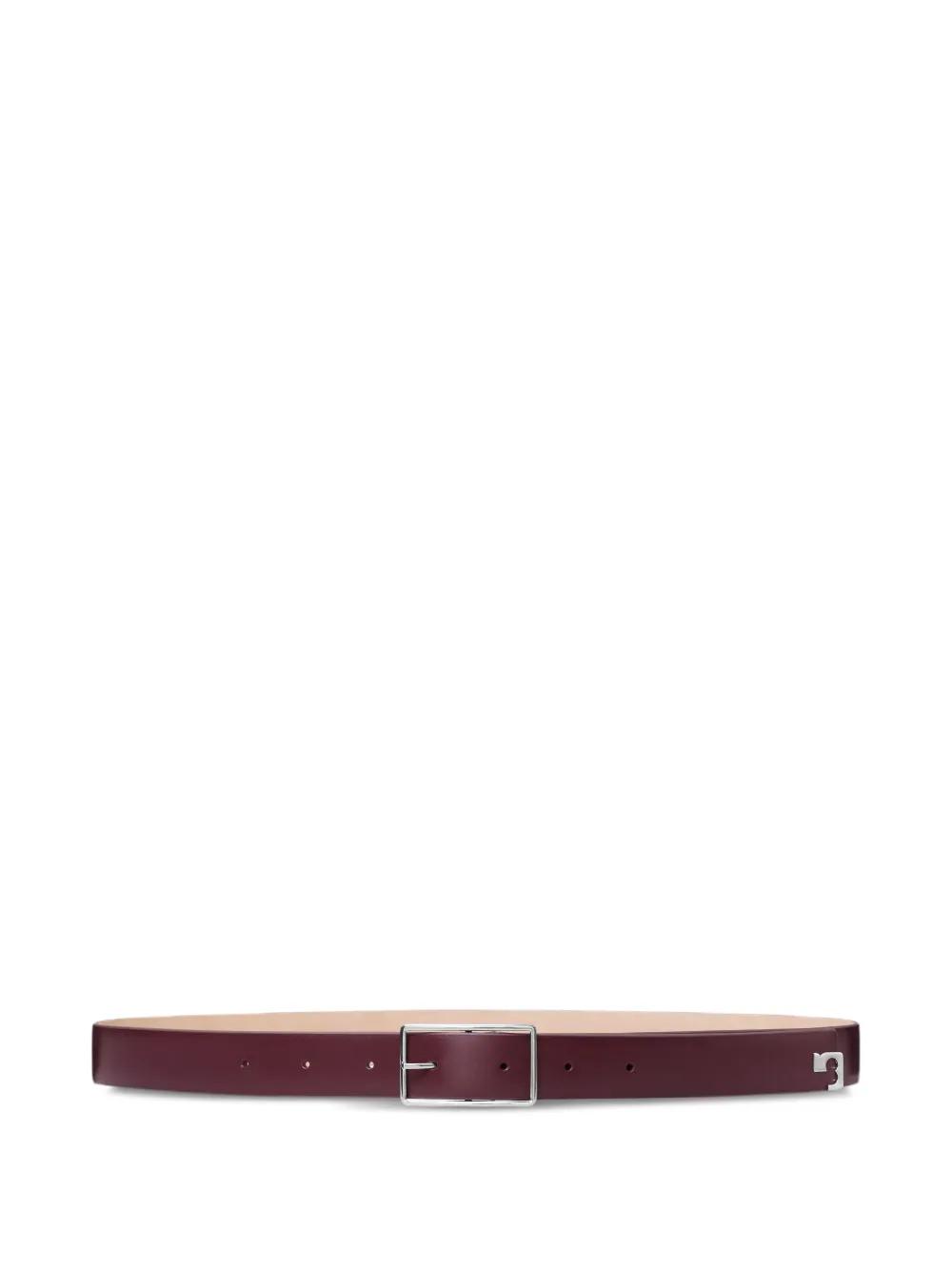 black calf leather smooth grain silver-tone hardware signature numbers motif buckle fastening single loop punched holes pointed tip