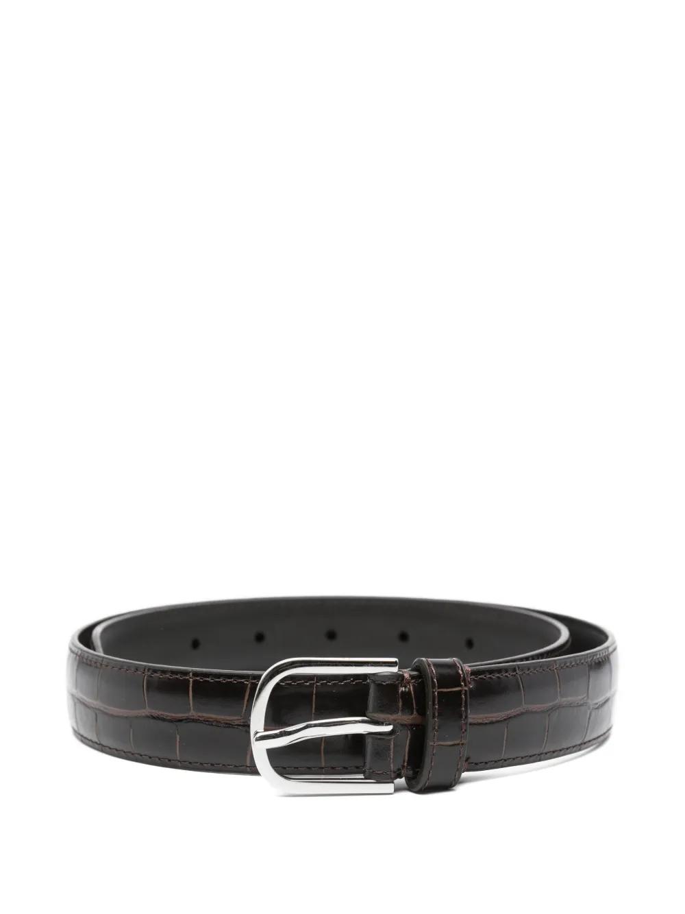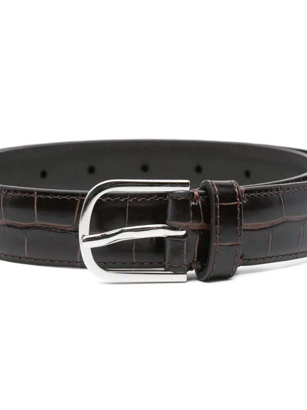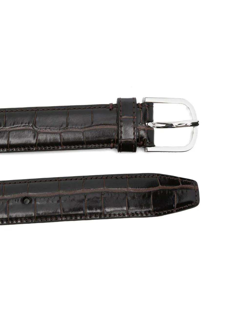 chocolate brown crocodile-embossed silver-tone hardware adjustable buckle fastening tonal stitching