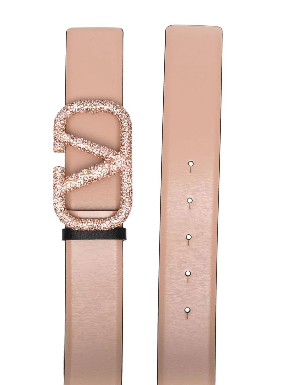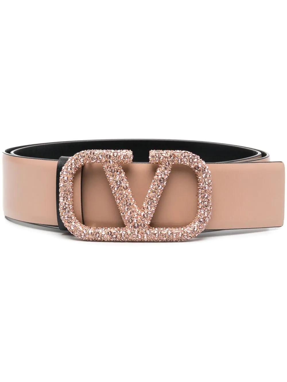 blush pink/black calf leather VLogo Signature logo buckle fastening Swarovski crystal embellishment adjustable fit reversible