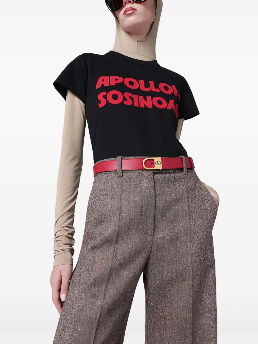 red gold-tone hardware logo buckle adjustable fit tonal stitching