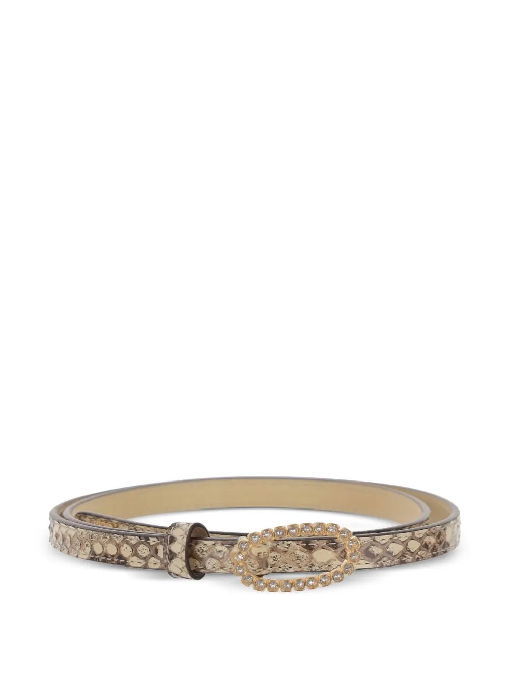 Valentino Ready To Wear light beige snakeskin effect oval buckle crystal embellishment calf leather