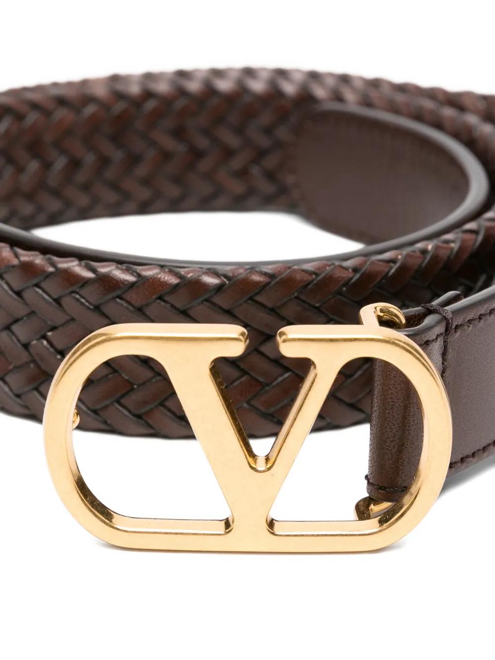 Valentino Ready To Wear brown braided calf-leather gold-tone buckle VLogo buckle